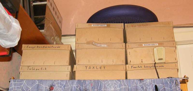 Bár lehetett volna úgy is, mint ahogy azt eredetileg terveztem, a már elcsomagolt detektoros rádiót egyszerűen nem volt szívem a folpack burkolatától megfosztani. Természetesen ebben az is szerepet játszott, hogy a detektoros rádió rezgőköre fixre össze van forrasztva párhuzamosnak, miközben az előtúrni szándékozott társát igény esetén soros rezgőkörként is összeállíthatom, épp csak mint ahogy mindig, fel kell érte másznom a doboztorony legtetejére. |