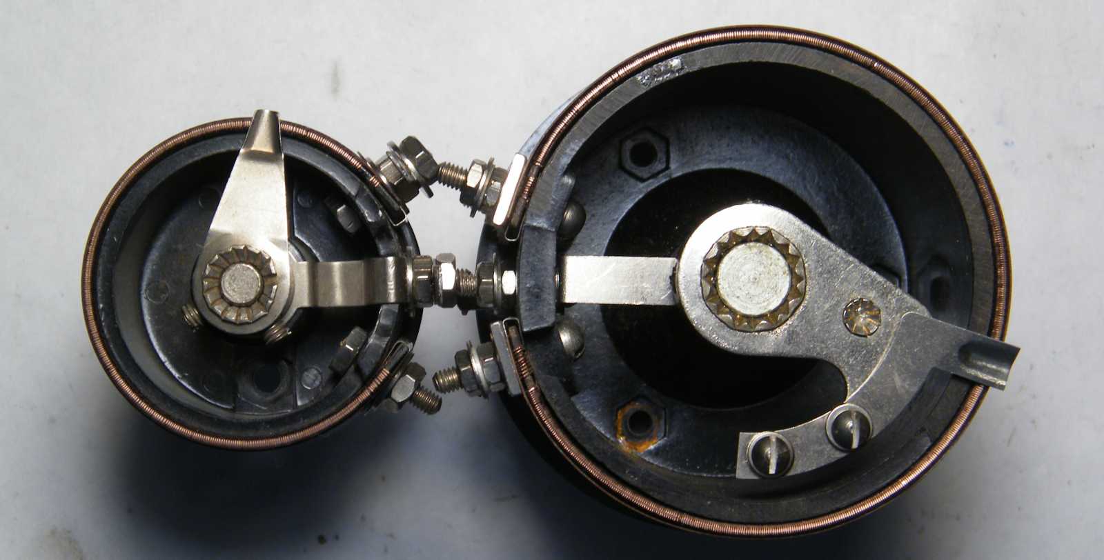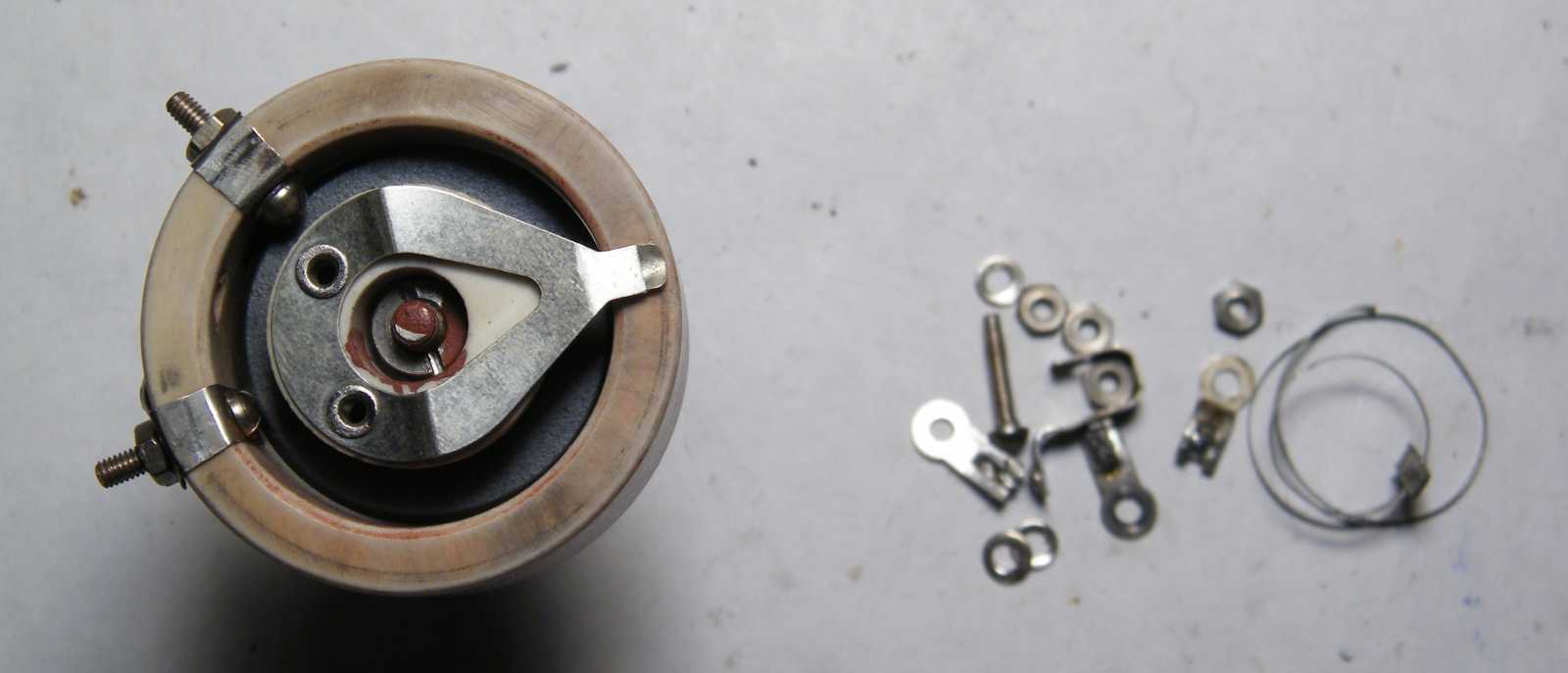 Hogy amit építettem, az variométernek speciel használhatatlan, attól még ráforrasztottam a forgórészre azt a kivezető spirálrugót, ami eredetileg valahol belül volt. Ezt amúgy csak azért tettem, hogy a formátlan alkatrész a többi apróság között nehogy előkeríthetetlenül elhányódjon. |