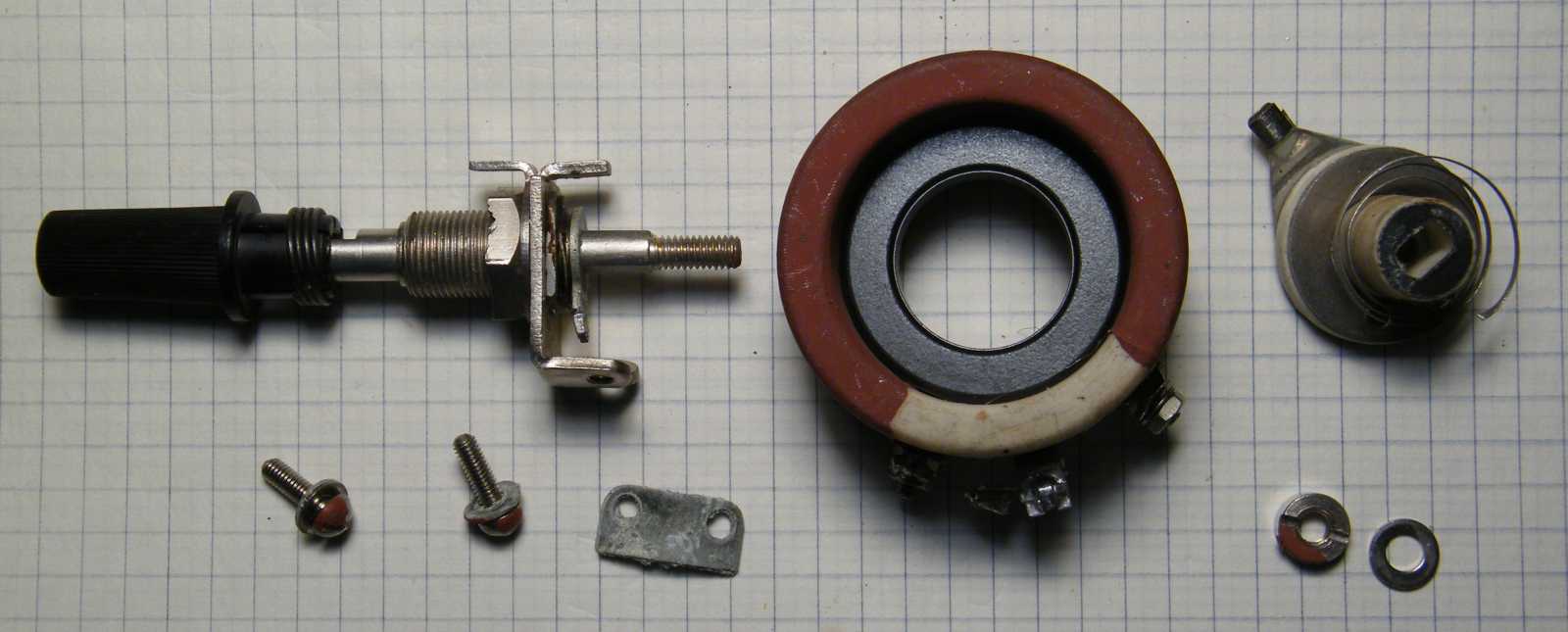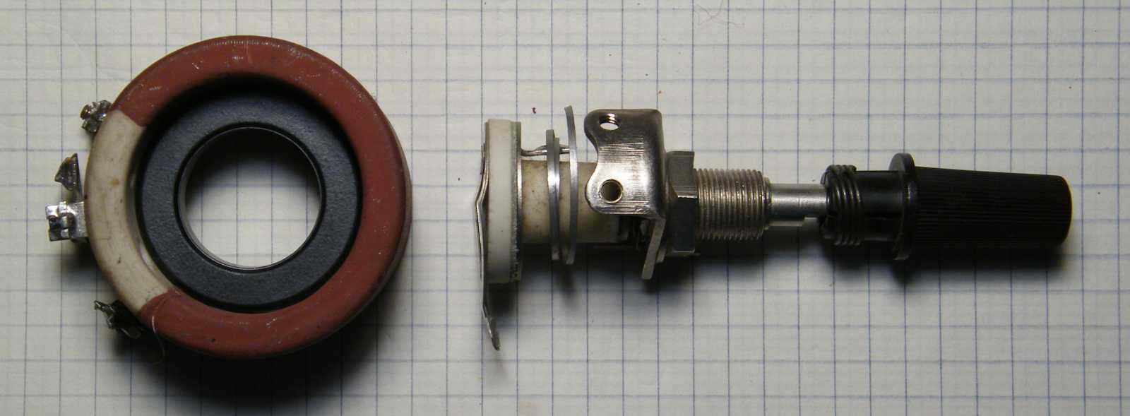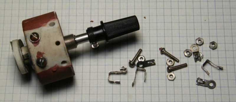 Mikor másnap délelőtt, vagyis még friss állapotban az amúgy beteg, tehát nem kár érte státuszú huzalpotenciométert apró elemeire bontottam, majd a belsejét 180 fokkal elfordítva szereltem bele (lásd a balra értelmetlenül kilógó részt), akkor persze még tudtam, hogy ezzel a mókolással mégis mit kívántam elérni, kisvártatva azonban már annyira nem jött vissza az előbb még meglévő konstrukció lényege, hogy a potmétert szégyenszemre inkább visszaalakítottam eredeti állapotába, pedig biztosra vettem, hogy valami egészen korszakalkotó ötletem volt. Később persze beugrott, hogy mi volt az, akkor azonban valahogy már nem tetszett annyira. |
