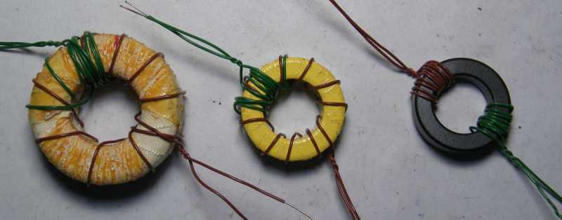 Miközben a balra látható gyűrűmagra tekercselt meneteket egyszerűen csak megszámoltam, majd az eredményt beadtam a képletbe, addig a jobbra láthatóra feltekertem a szokásos 10 menetet. A középen látható számok már az AL értékek. |