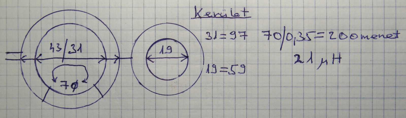 hosszra 0,45-ös huzalból 155 menet fér fel, ami számításaim szerint 12,9