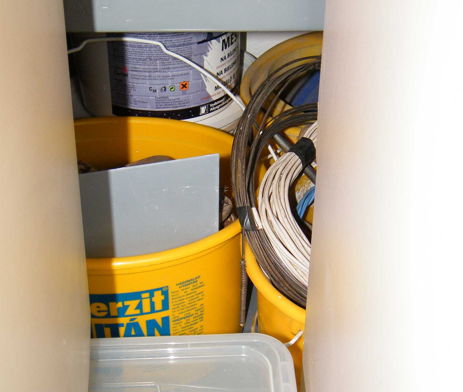 megmaradt egy negyed vödörnyi. Mivel a fehér vödörben már kevés a festék,