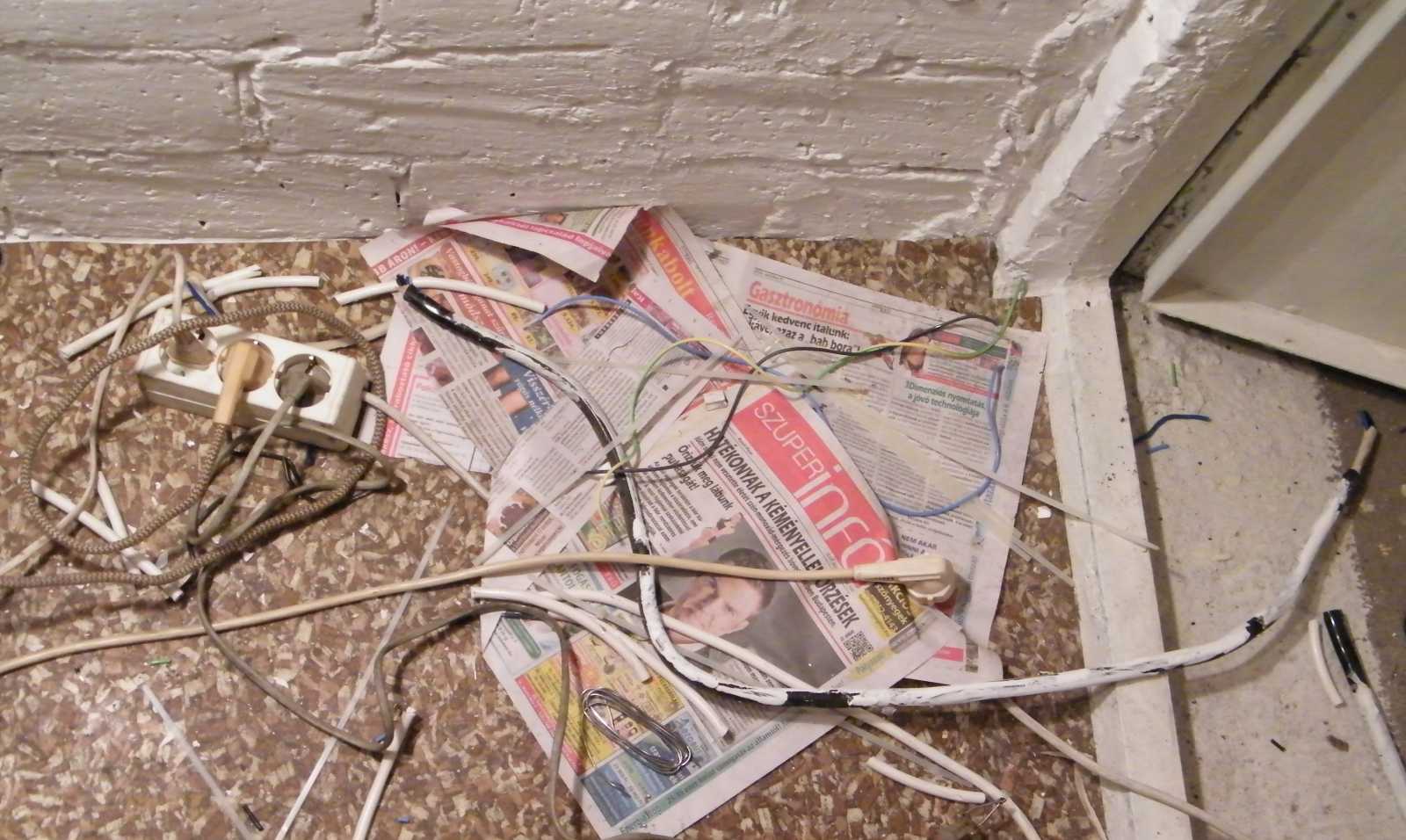 Szögeken lóg a bejövő kábel, illetve helyenként