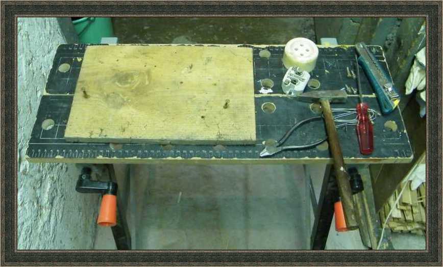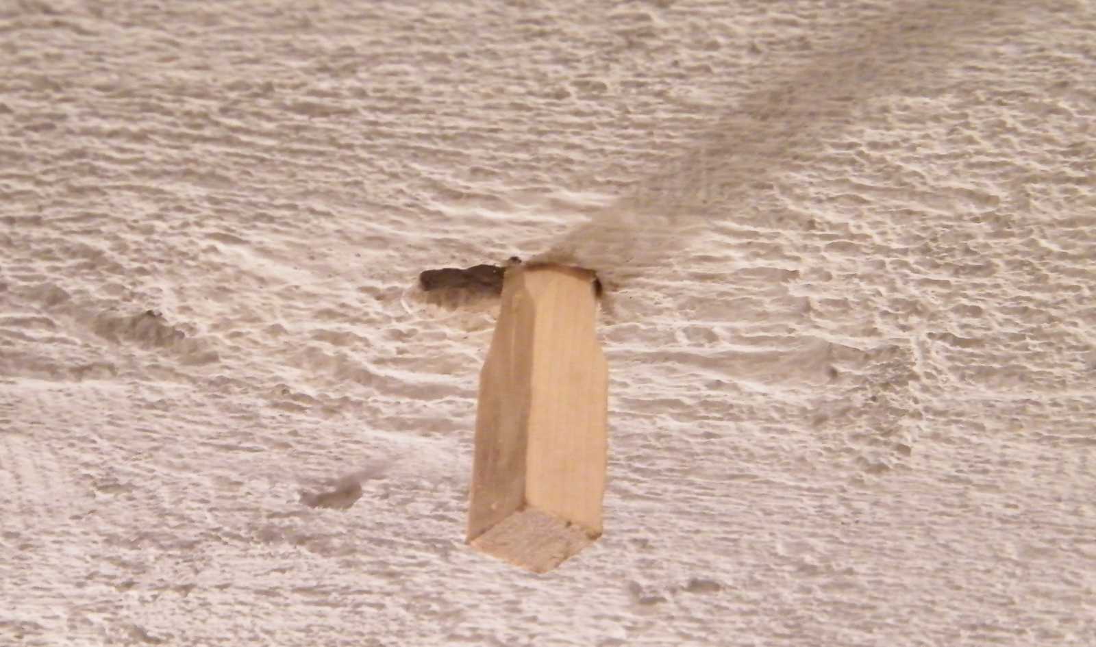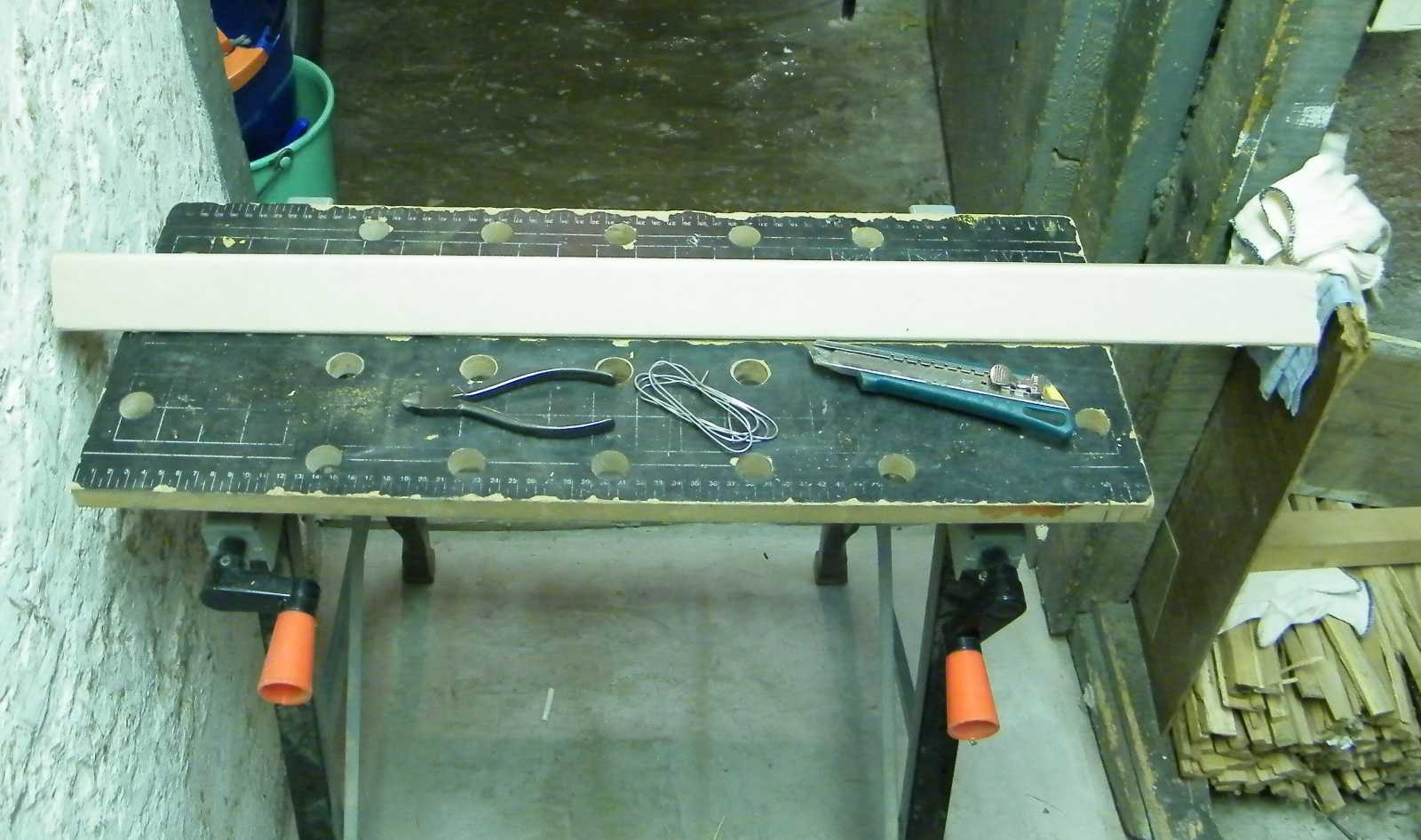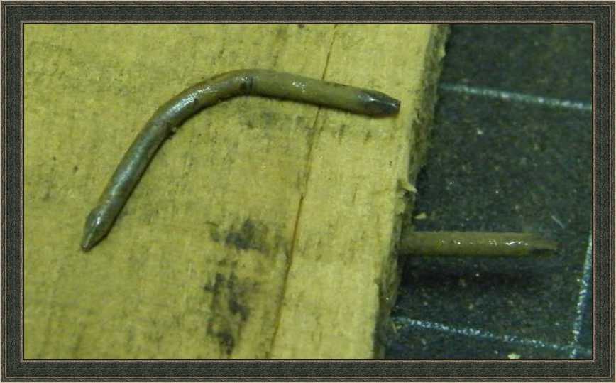 Először úgy harmadig beütjük a kéthegyű szegeket a deszka élébe, aztán
