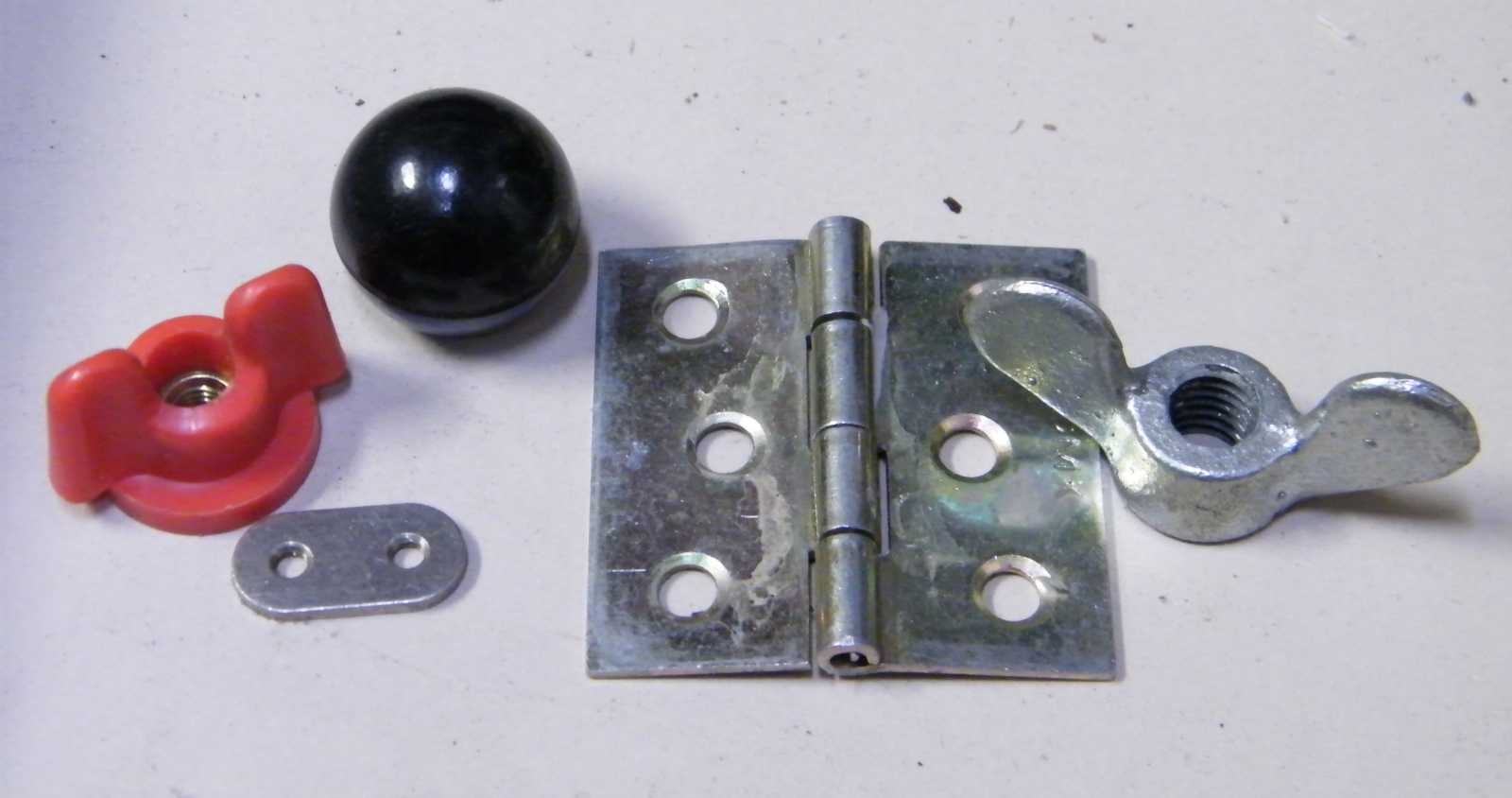 fekete menetes gombot, dupla hármas anyát, és egy közepes méretű zsanért.