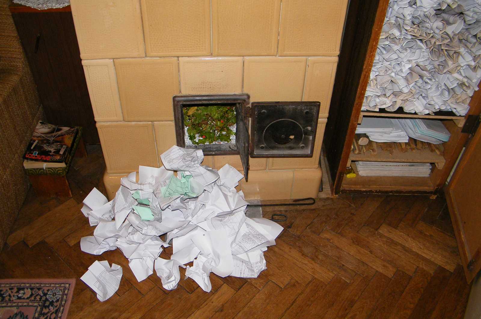 kályhával. Szóval a papírnak annyi hamuja van, hogy három napi tüzelés után