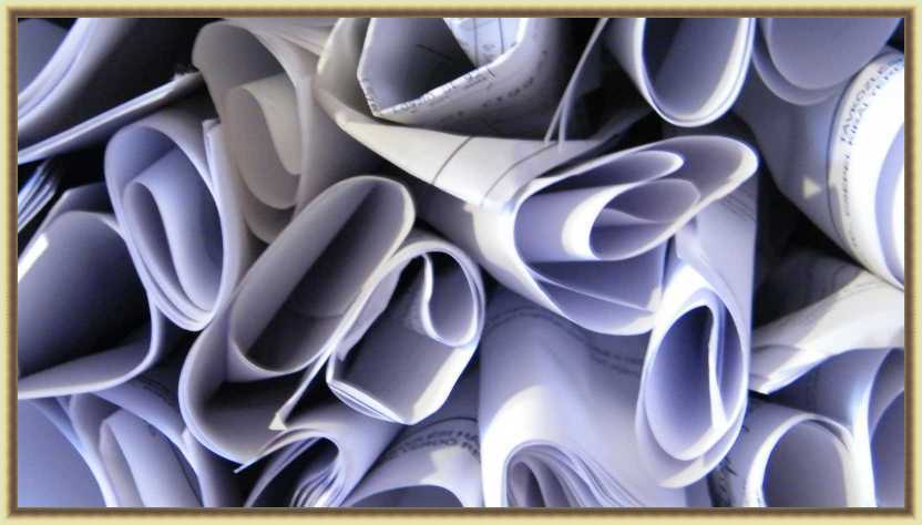 frissen berakott papírtekervények sora, azonban sokkal nagyobb