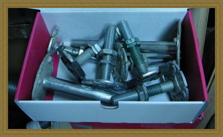 szétpakolva heverő óriási csavarokat,
