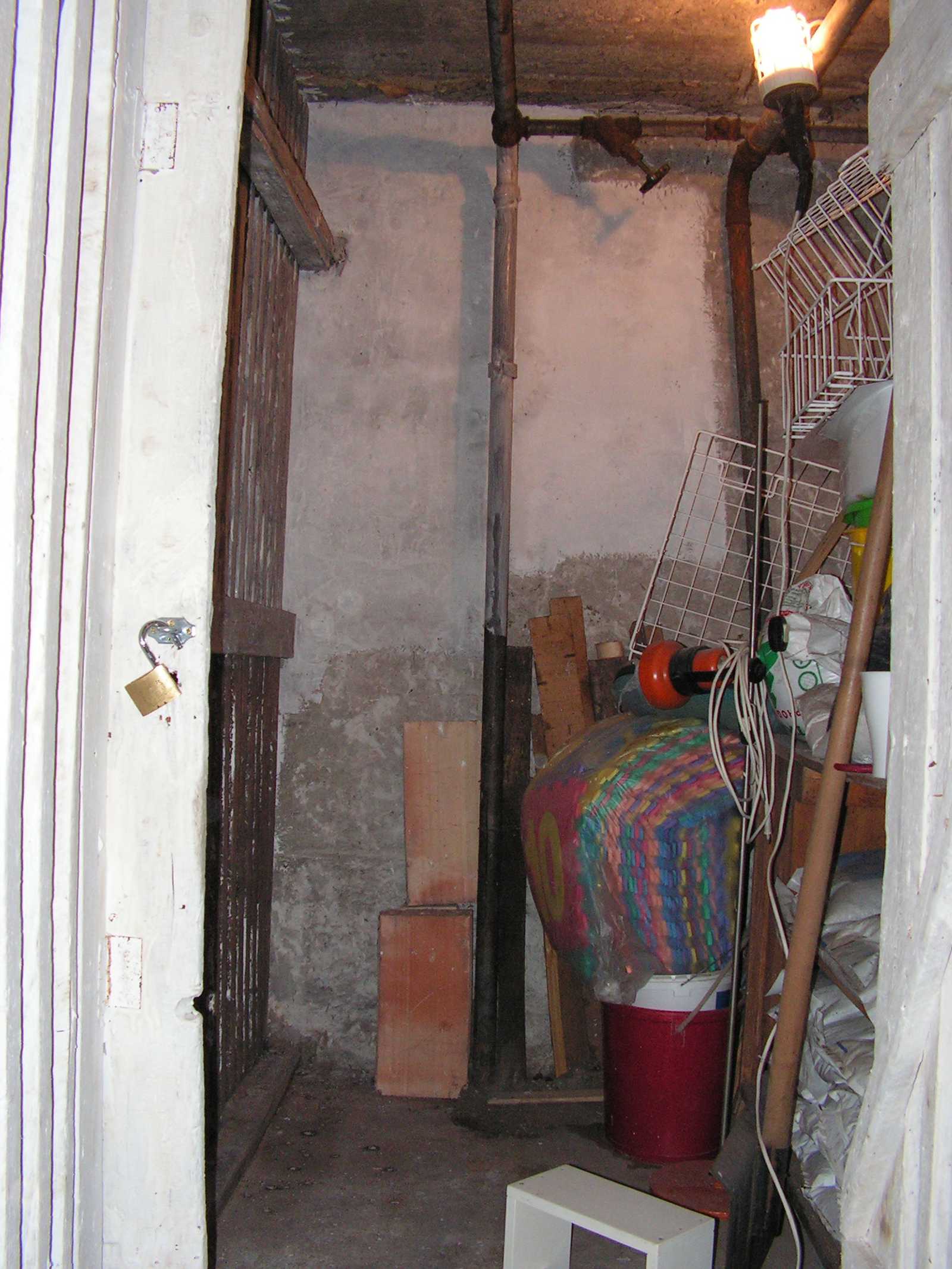 balra a polc, amit egy kedves lakó "felejtett" kint a pincék előtti folyosón.