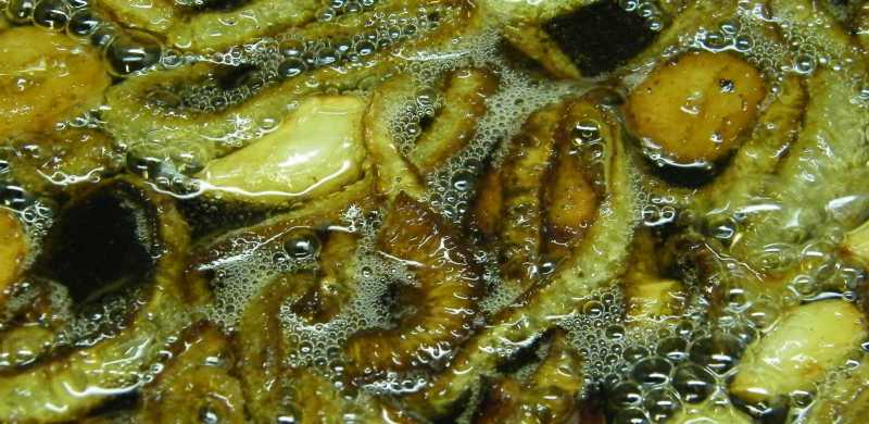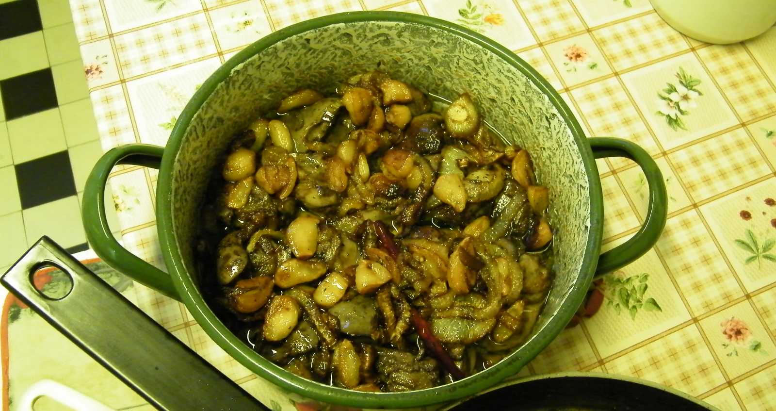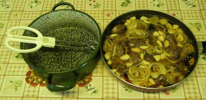 Majd ráborítom a serpenyőből a zsírt, s leteszem a lábost a sarokba hűlni. Ez az étel, bár nagyon úgy néz ki, mintha már ehető lenne, de még nem az, ez ugyanis egyértelműen hidegen fogyasztandó. |