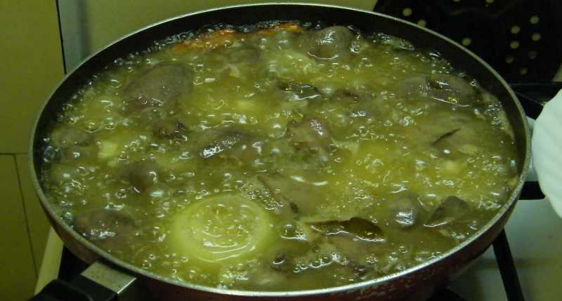 A májat a többi összetevővel kerek 20 percig szoktam hagyni együtt rotyogni.