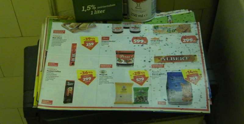 Amit a képen látunk, az egy a gáztűzhely mellett elhelyezett fritőz tetején díszelgő reklámújság halom, amit pedig a felső lapon, az a sülő máj pukkanása közben a fedő alól kifröcskölt zsír. Na ezért nem szabad a májat fedő nélkül sütni, és persze sülés közben nézegetni sem. Meg persze azért sem, mert akkor még képes és kipárolog belőle a nedvesség. |