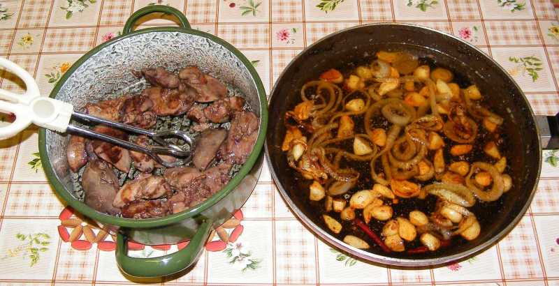 20 perc elteltével a máj már készen van. Ekkor a tűzről levéve, közben a
