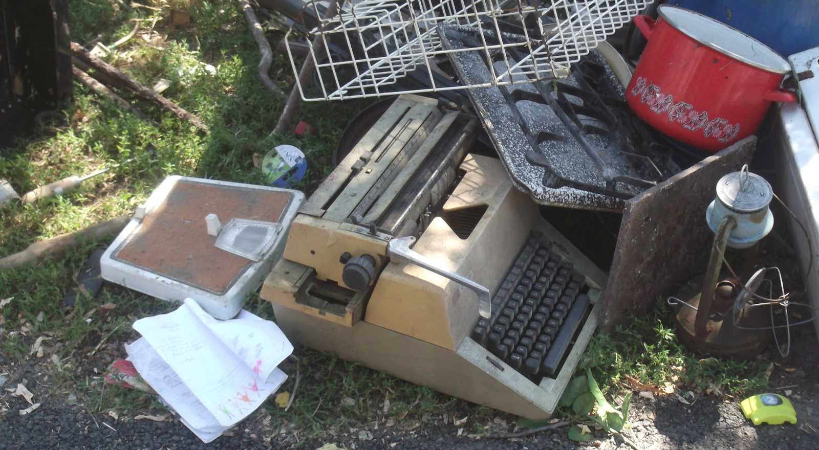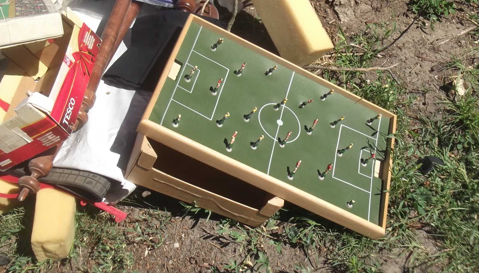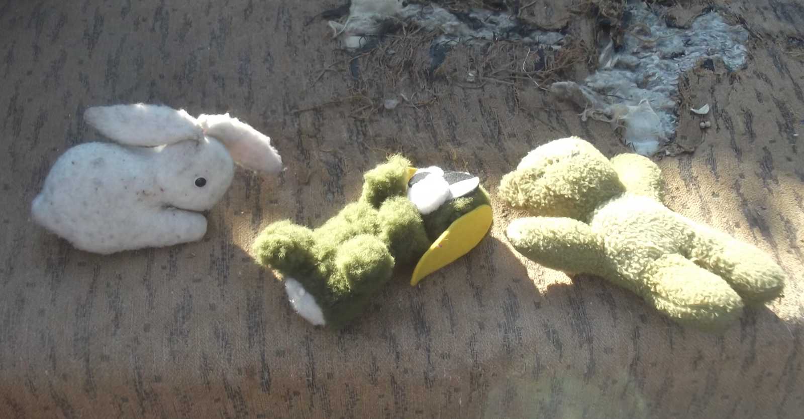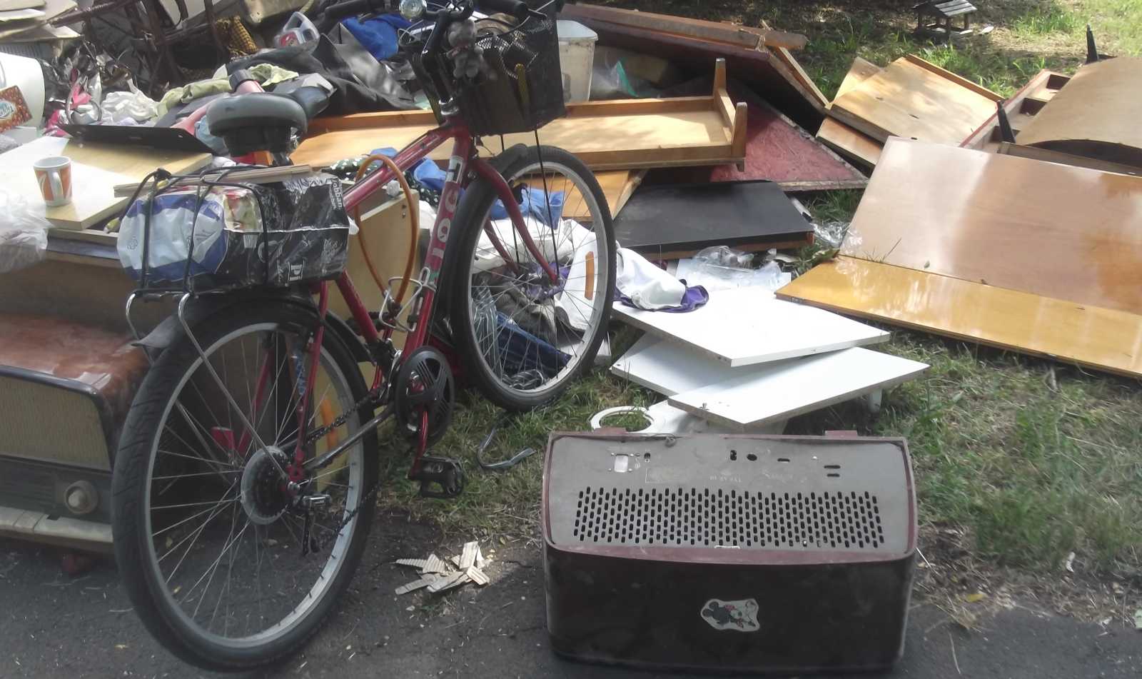 Felsorolom inkább nyitásképp a kidobva látott játékokat és plüssállatokat. Ez a maci a házunk előtti kupacon feküdt. Kezdetben mondjuk nem így, hanem csak úgy egyszerűen kidobva, de aztán jöttek a vasazók, és a velük együtt érkezett család apróbb tagjai szépen lefektették a macit. Mondhatni kedvesebben bántak vele, mint a gazdája aki kidobta. |