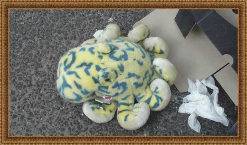 Számomra valahogy rettentő szomorú, mikor az évekig ölelgetett játék végül a szemétre kerül. Pláne akkor, ha amúgy semmi baja. Ezt a kutyust is nyugodtan ki lehetett volna mosni, és akkor őrizhette volna tovább a házat, vagy ölelgethette volna az unoka. |