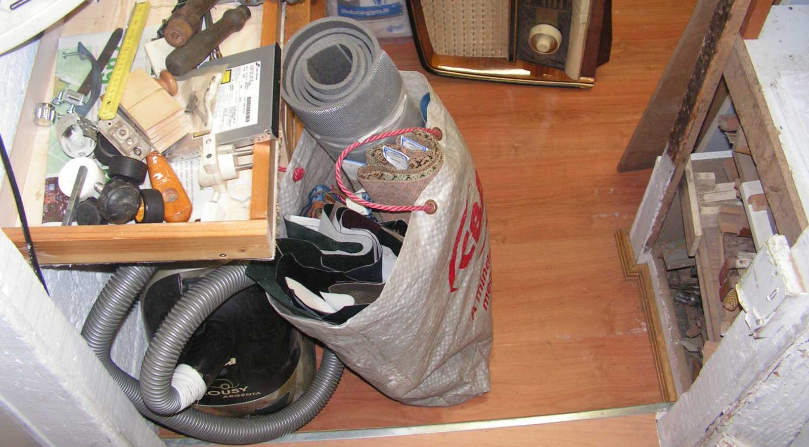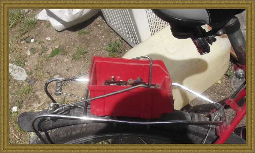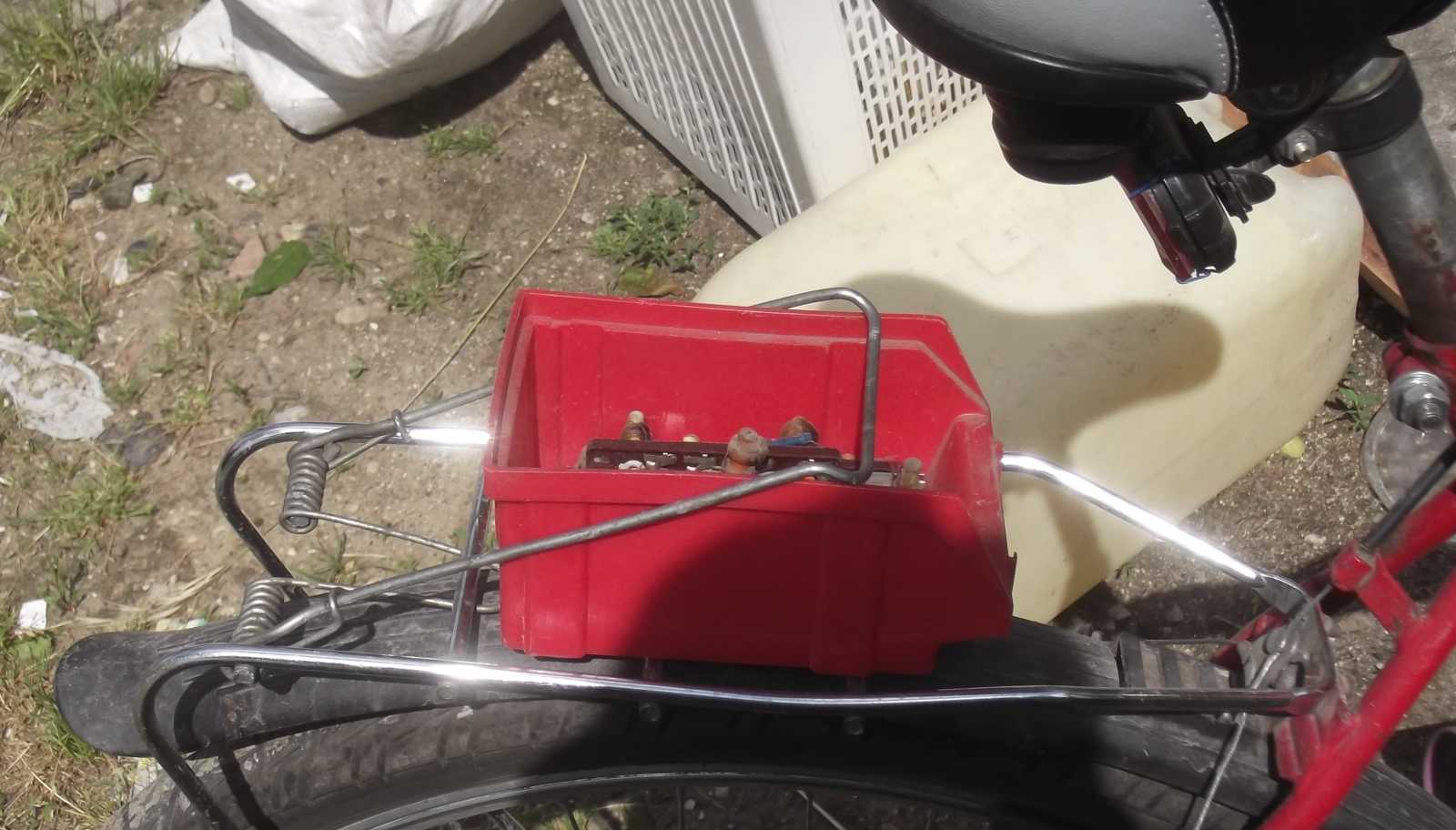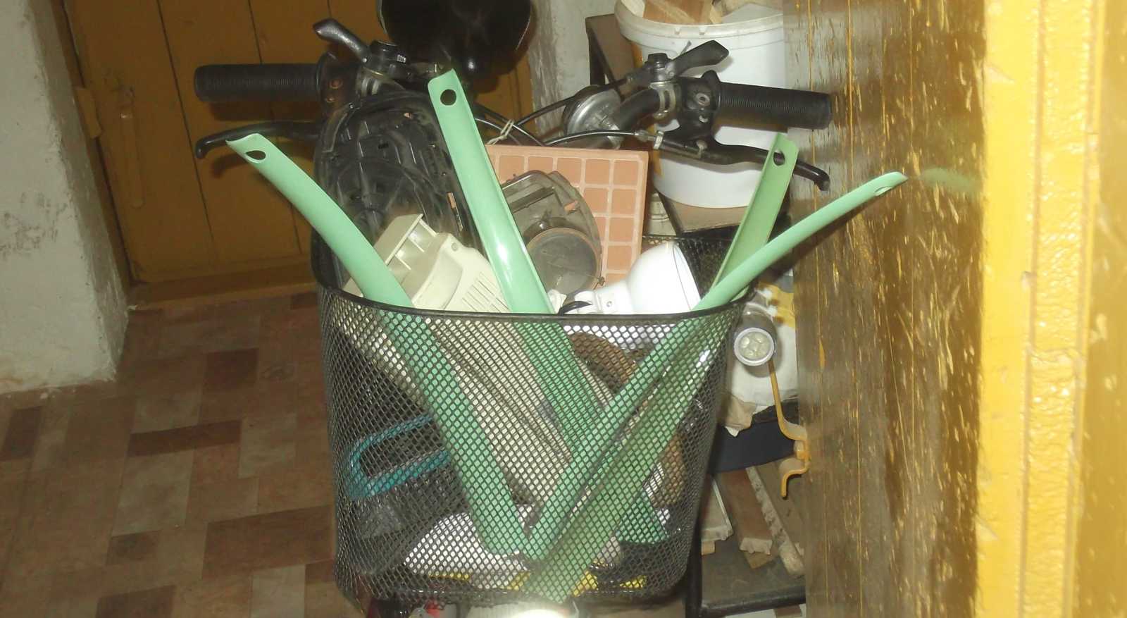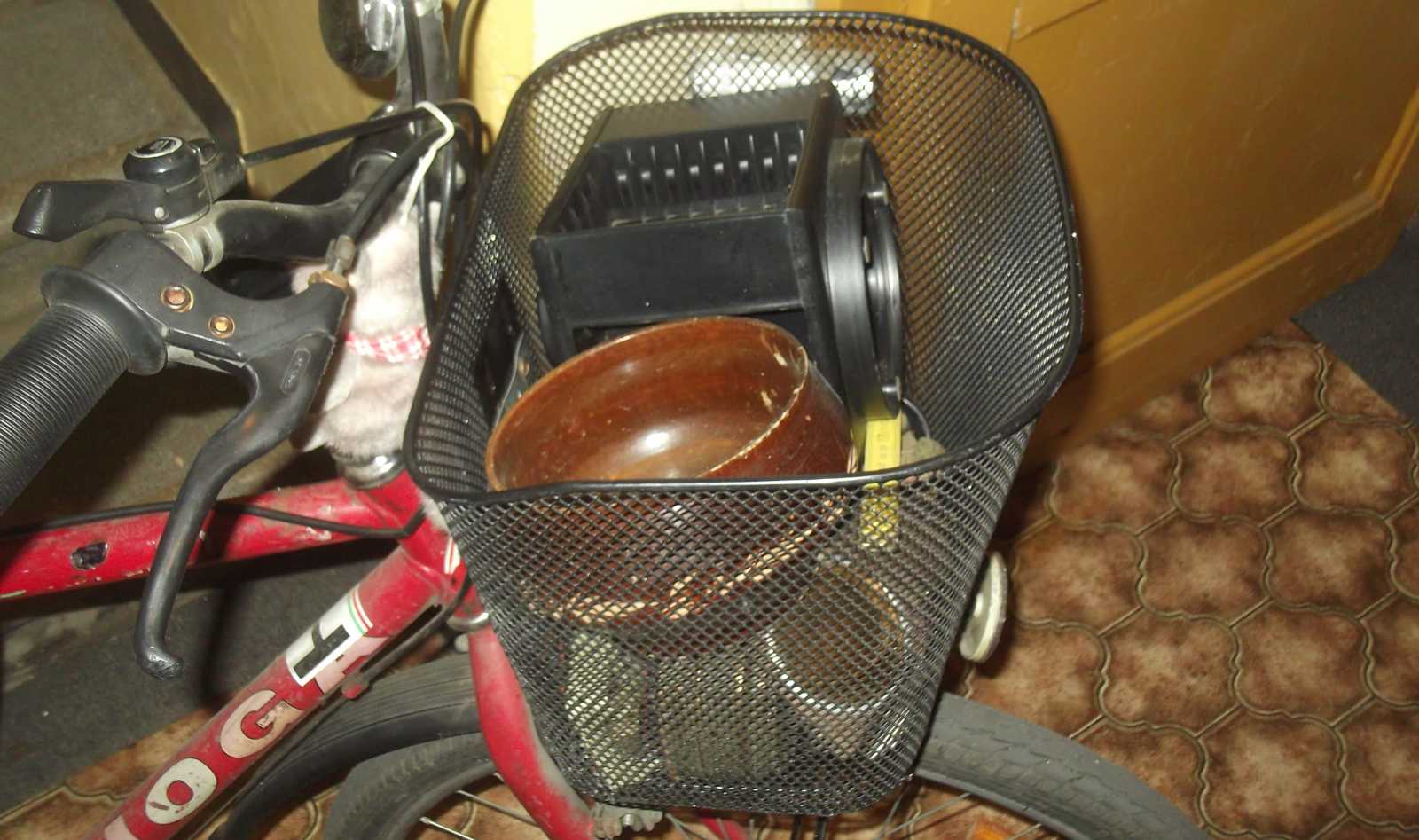 Pedig nem, hiszen a kosárban mindenféle olyan sziriszar ül, mint például az azóta már el is ajándékozott iratmegsemmisítő. A cipőkanalakat amúgy azért hoztam el mert azokkal voltak kitámasztva a mindenféle vackok (például a csempék), hogy ne csesszék szét a kosarat. Legalábbis egészen addig így volt, míg csak le nem toltam a bicajt a lépcsőn. Hogy merre állnak, az most már azért nem számít, mert már itthon vagyok, s a pince telítettsége okán menten véget is vetettem a további beszerzéseknek. |