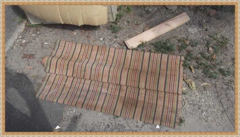 Korábban mutattam egy olyan szőnyeget, amit ugye nem hoztam el. Na erről a másikról viszont le sem tagadhatnám, hogy ez bizony már velem jött! Mi az, hogy minek? Nos azért, mert miután lekentem a hátát sziloplaszttal (hogy ne csússzon), nagyszerűen bevált a társasházban mint lábtörlő. |