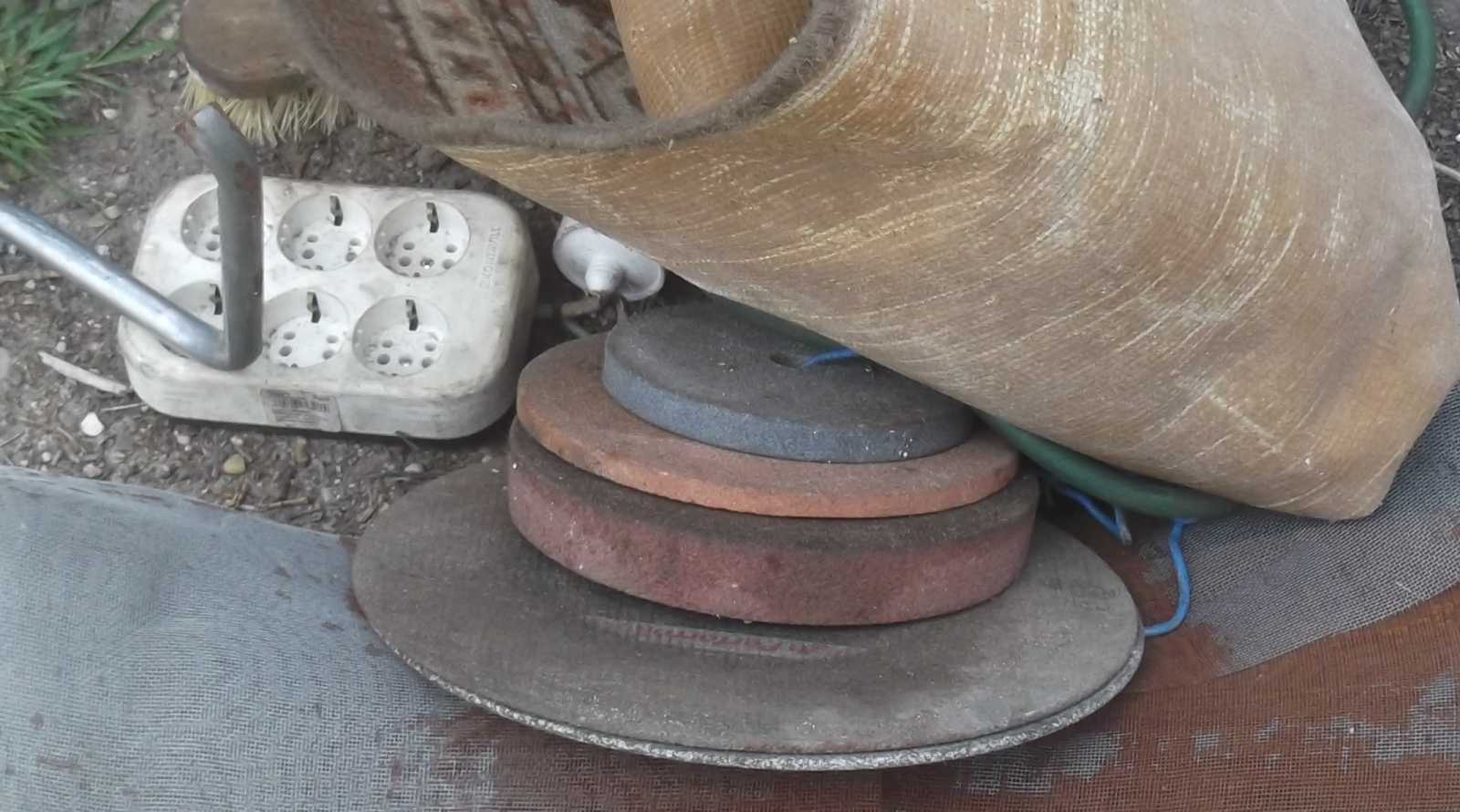 A tárcsák nem férnek bele még a nagyobbik flexembe se, s bár a kisebbik kő valószínűleg passzolt volna a köszörűmbe, de végül azt is otthagytam, mert jó ha eddig háromszor bekapcsolhattam azt a gépet, pedig már több mint 10 éve megvan. |