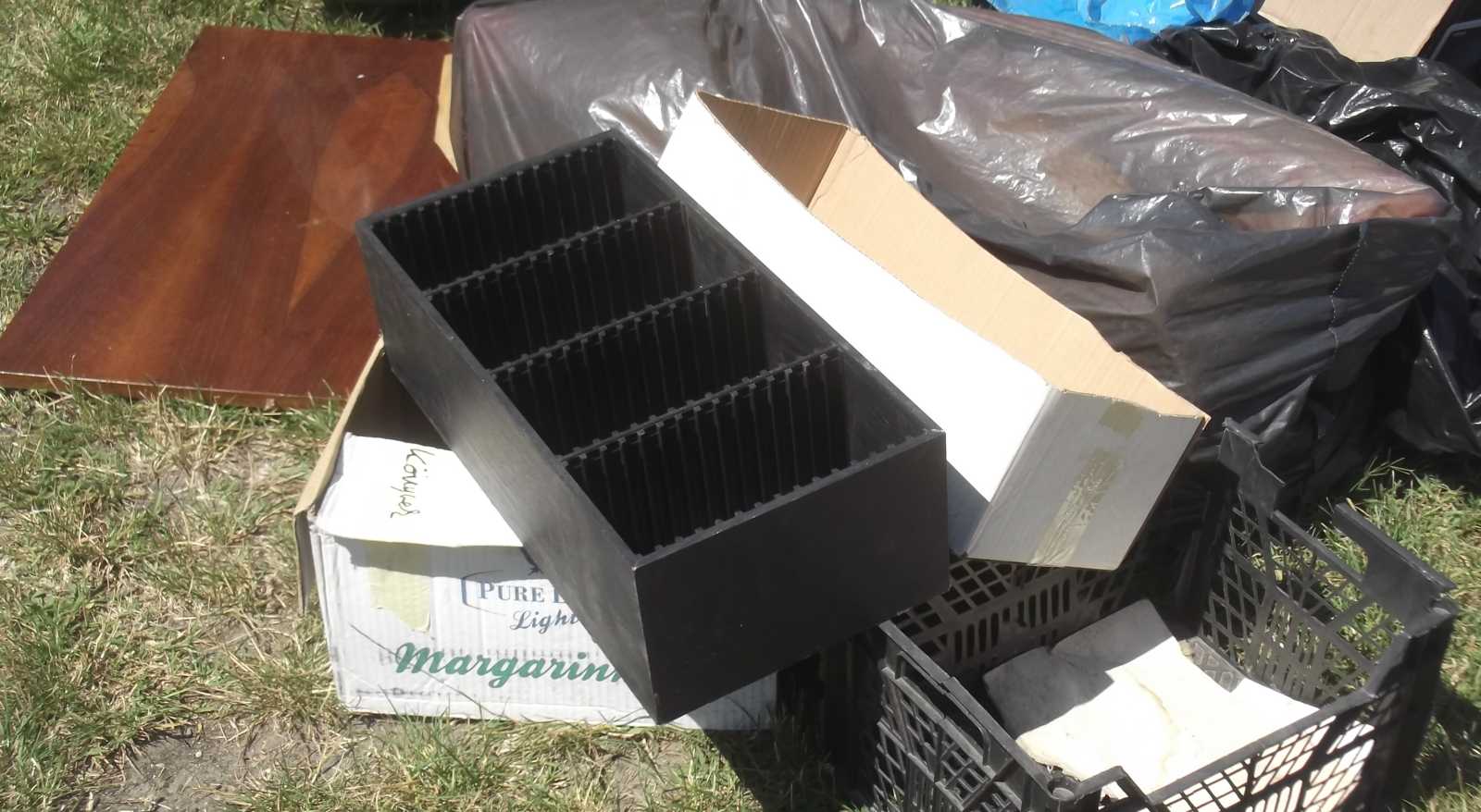 Itt mondjuk majdnem besírtam. Mert ugye épp kellett volna a virágállványba készülő fiókhoz némi plexi, és akkor itt van előttem kidobva, vagyis ingyen elhozhatóan több tábla átlátszó, ráadásul nem is plexi, hanem egyenesen az annál már sokkal masszívabb polikarbonát lemez, és nem tudom elhozni. Mi az, hogy miért nem? Nos azért, mert ezek a táblák olyan nagyok voltak, hogy sem gyalog, sem biciklivel nem voltak szállíthatók. |