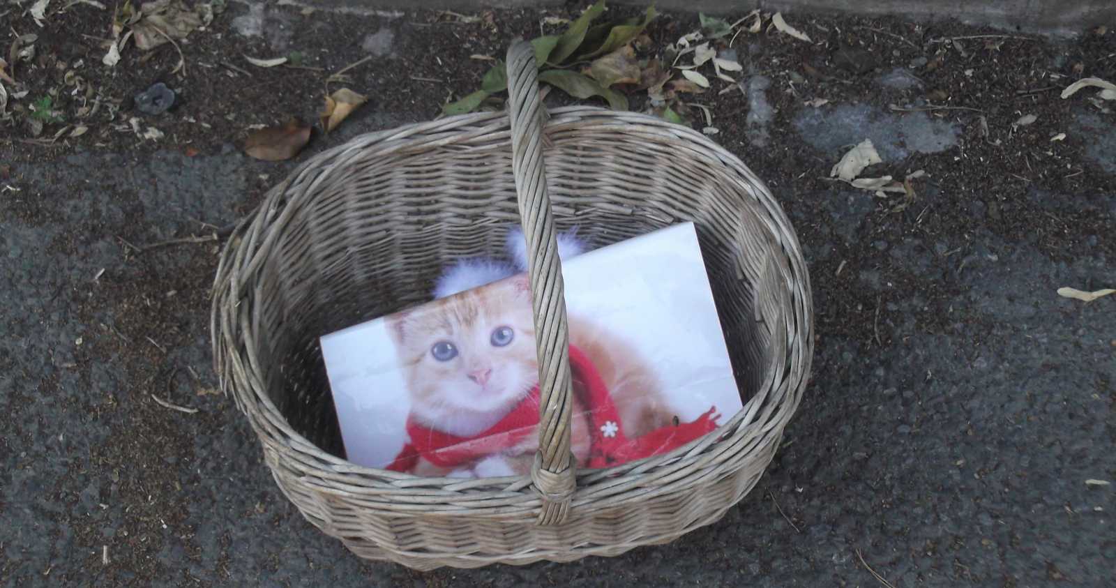hittem, hogy egy cica ül a kosárban.