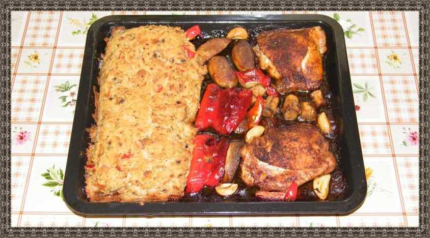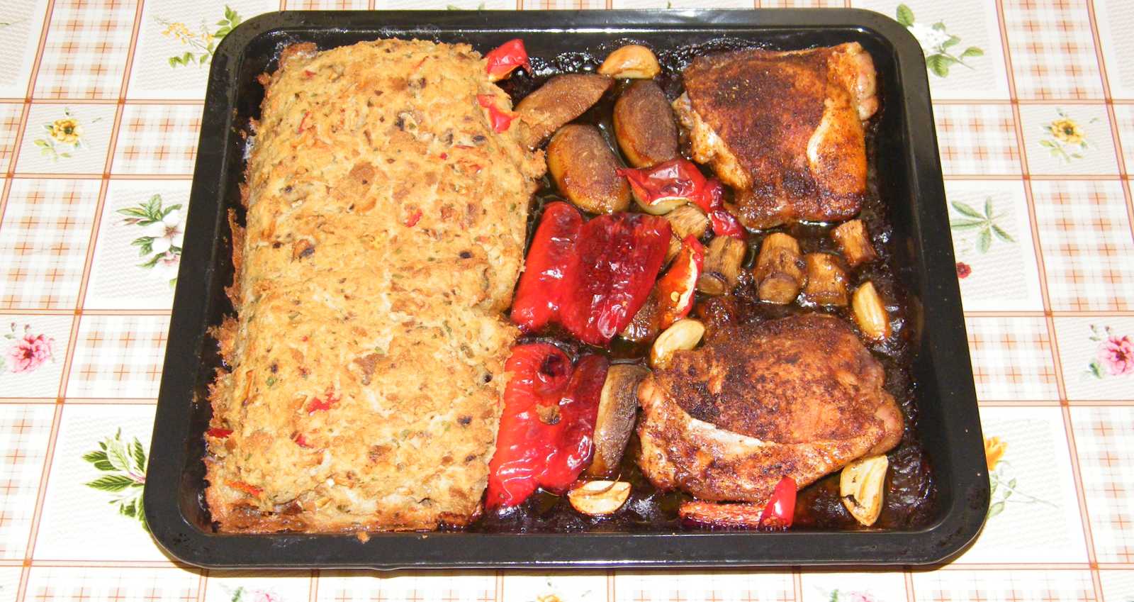 csirkecombot, a töltelék felét, valamint a körítés gombát, paprikát és