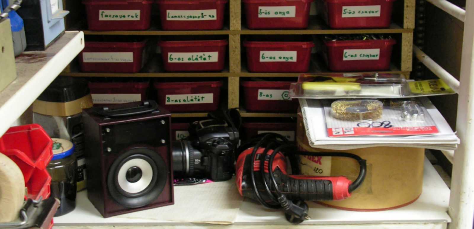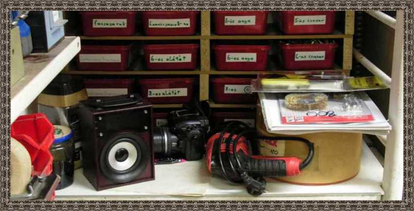 Hanem például erről a másikról is, ahol természetesen szintén nem szabadna lennie semminek. A piros fúrógép az még csak hagyján, hiszen azt már mutattam, de a zenedoboz és a RAW képes fényképezőgép még nem esett át a szétszedési procedúrán. Na most ahogy ez a tény tudatosult bennem, egyből eldöntöttem, hogy az összes ilyen státuszú, vagyis még bemutatatlan tárgy most azonnal átmegy (természetesen nem magától, hanem majd én viszem) a lomos pincébe. |