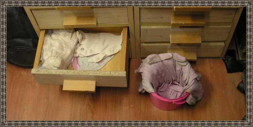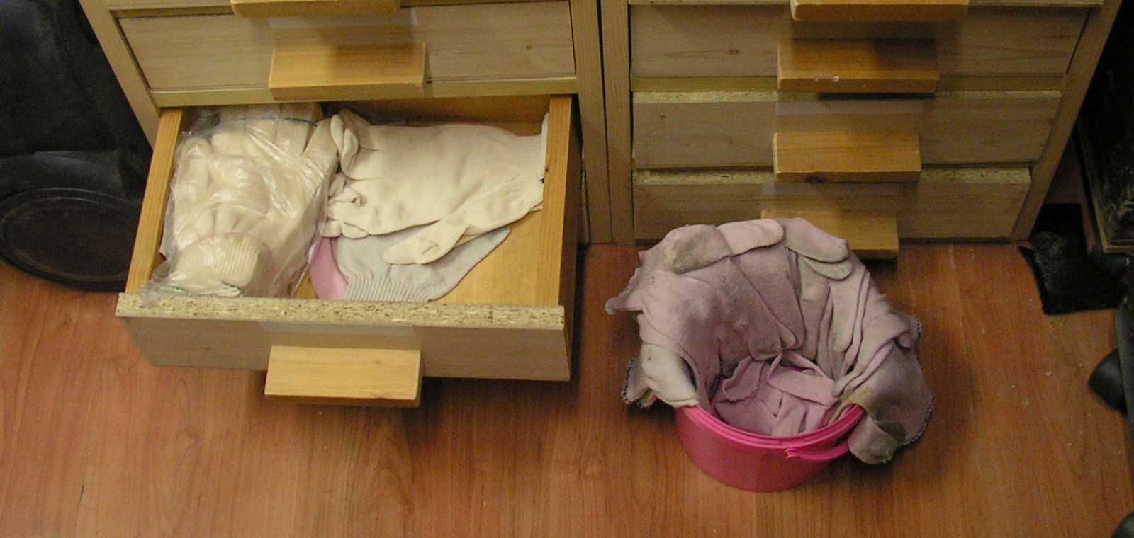 Ami nincs a helyén, az most azonnal legyen ott rendezőelv folyományaként megragadtam a kesztyűs vödröt, odaültem mellé a földre, majd berakosgattam a tartalmát a helyére. Már úgy értem, hogy a tiszta kesztyűk helye a fiókban van, miközben a koszosaké a vödörben. |