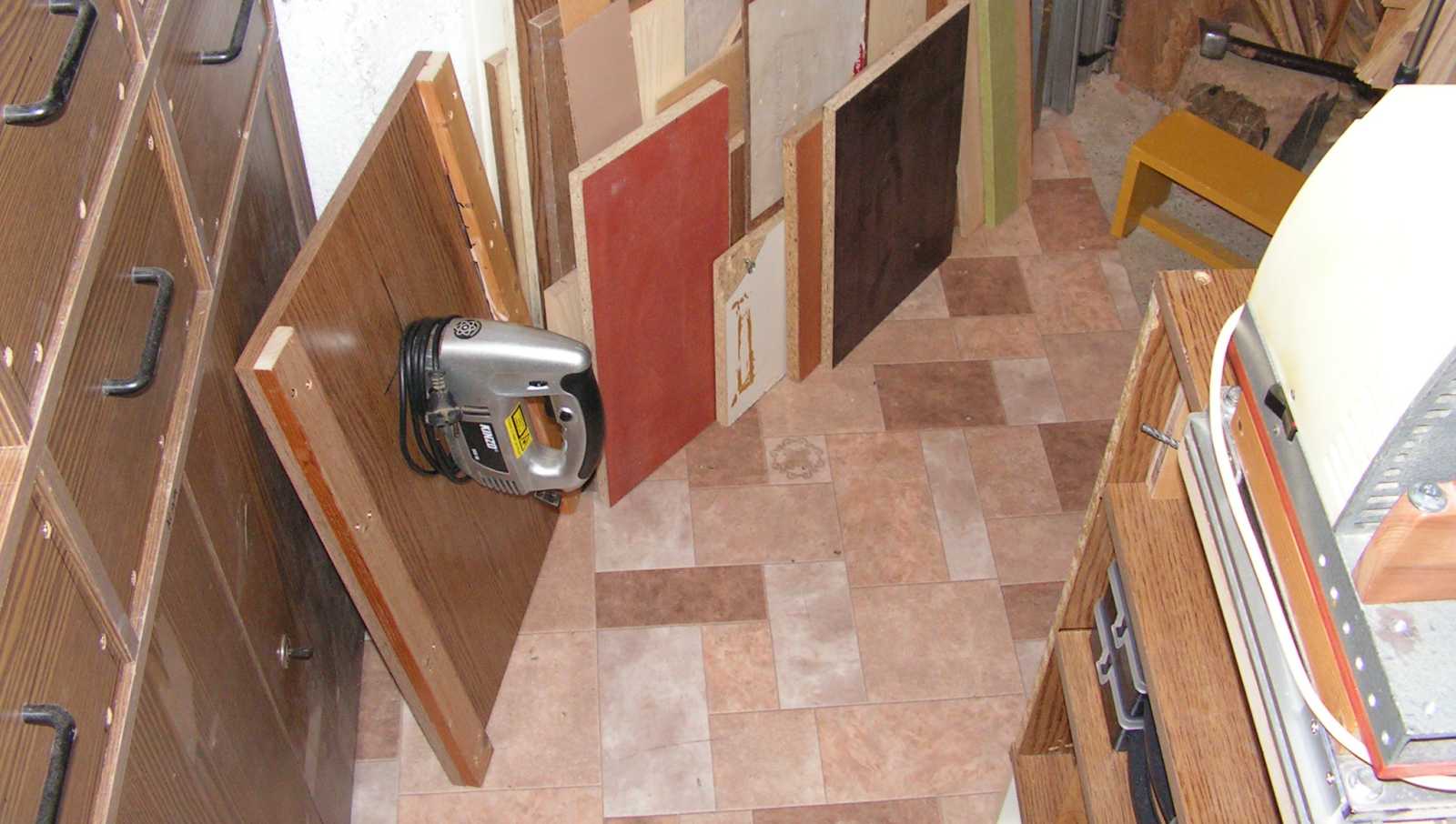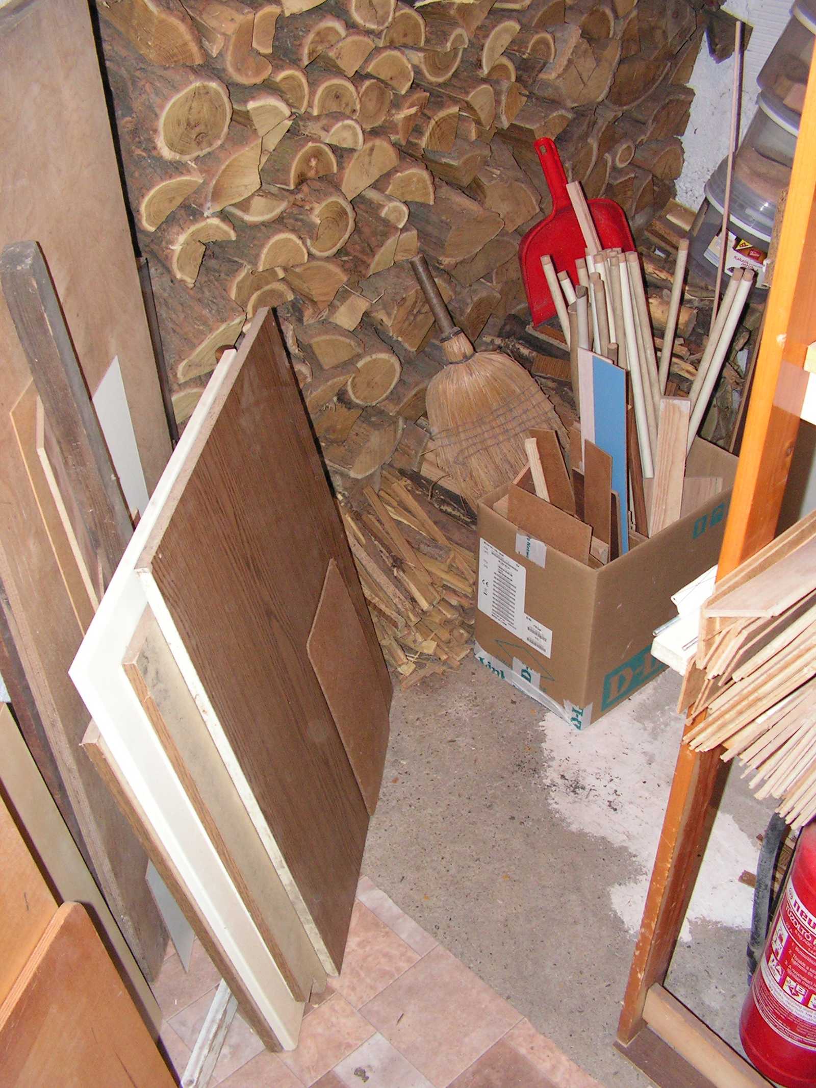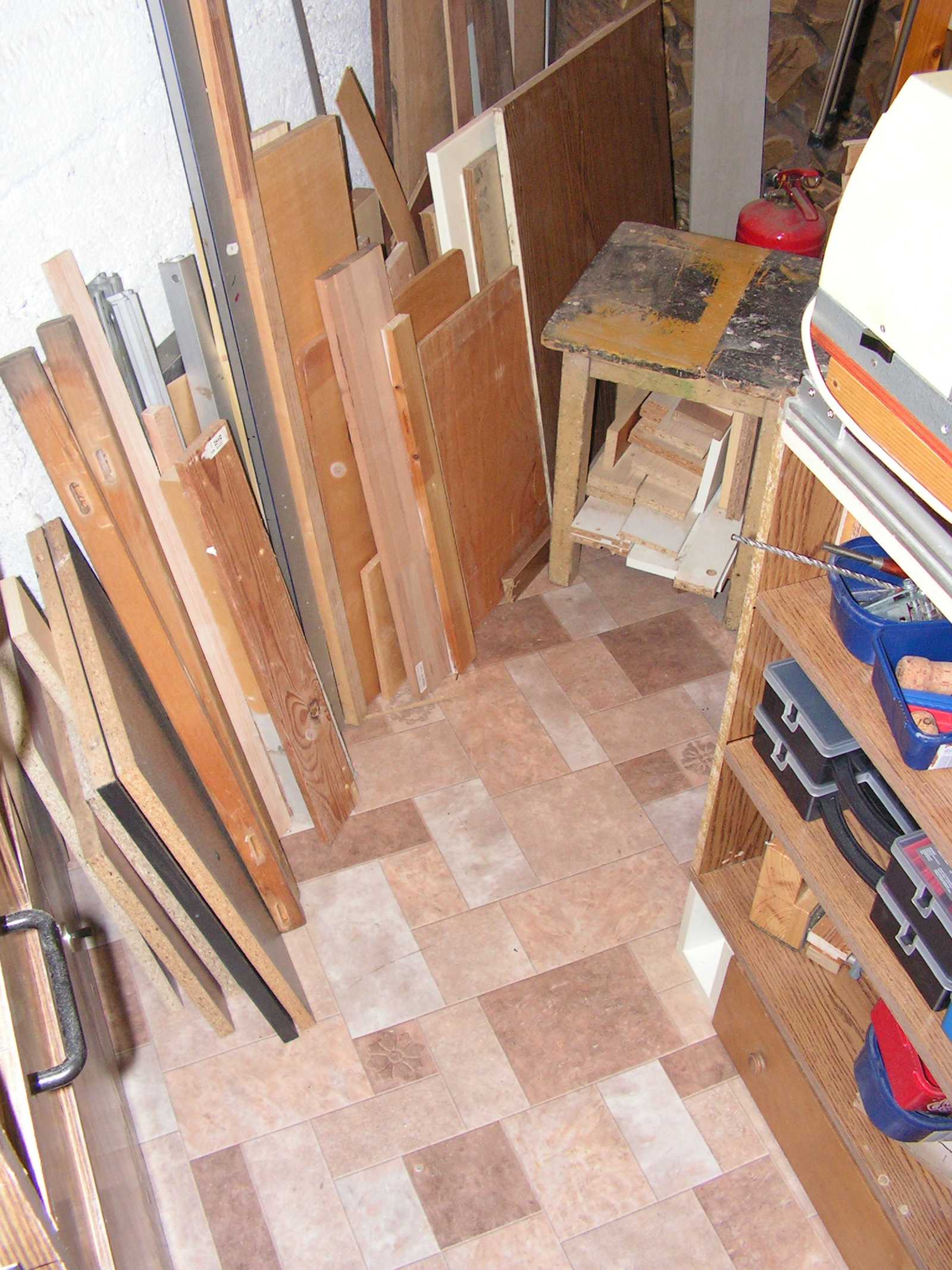 Hanem egyben az előbb még itt balra megtalálható kisebb nagyobb bútorlapokra is, melyek mennyiségét végül úgy sikerült elfogadható szintre redukálnom, hogy ami nagy volt, azt kitettem az előtérbe a bicajom mögé, ami meg kicsi, az felkerült a többi kicsihez a polcra. A laminált padlószálak a saját polcukra kerültek, míg a keményfáknak és a rétegelt lemezeknek nyitottam egy-egy újabb polcot. |