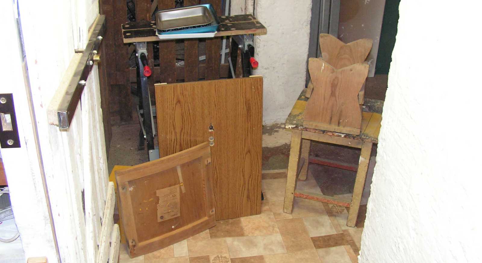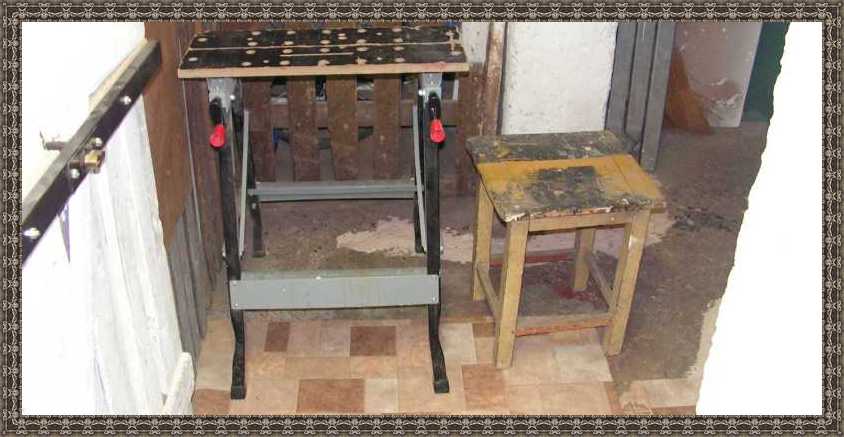 Gondoltam ezeknek azért csak van már helyük, de aztán kisvártatva kiderült, hogy a hokedlinek mondjuk még mindig nincs. A hokedli amúgy az összecsukható munkapad sokkalta bizonytalanabb lábakon álló elődje, mely jelzővel nem a már ingatagságára utaltam, mint inkább arra, hogy mivel felül szélesebb mint alul, pláne nem terpesztenek a lábai, könnyű vele munka közben felborulni. Tulajdonképpen már attól hajlamossá válik feldőlni, ha ráfogatom a szélére a satut. |