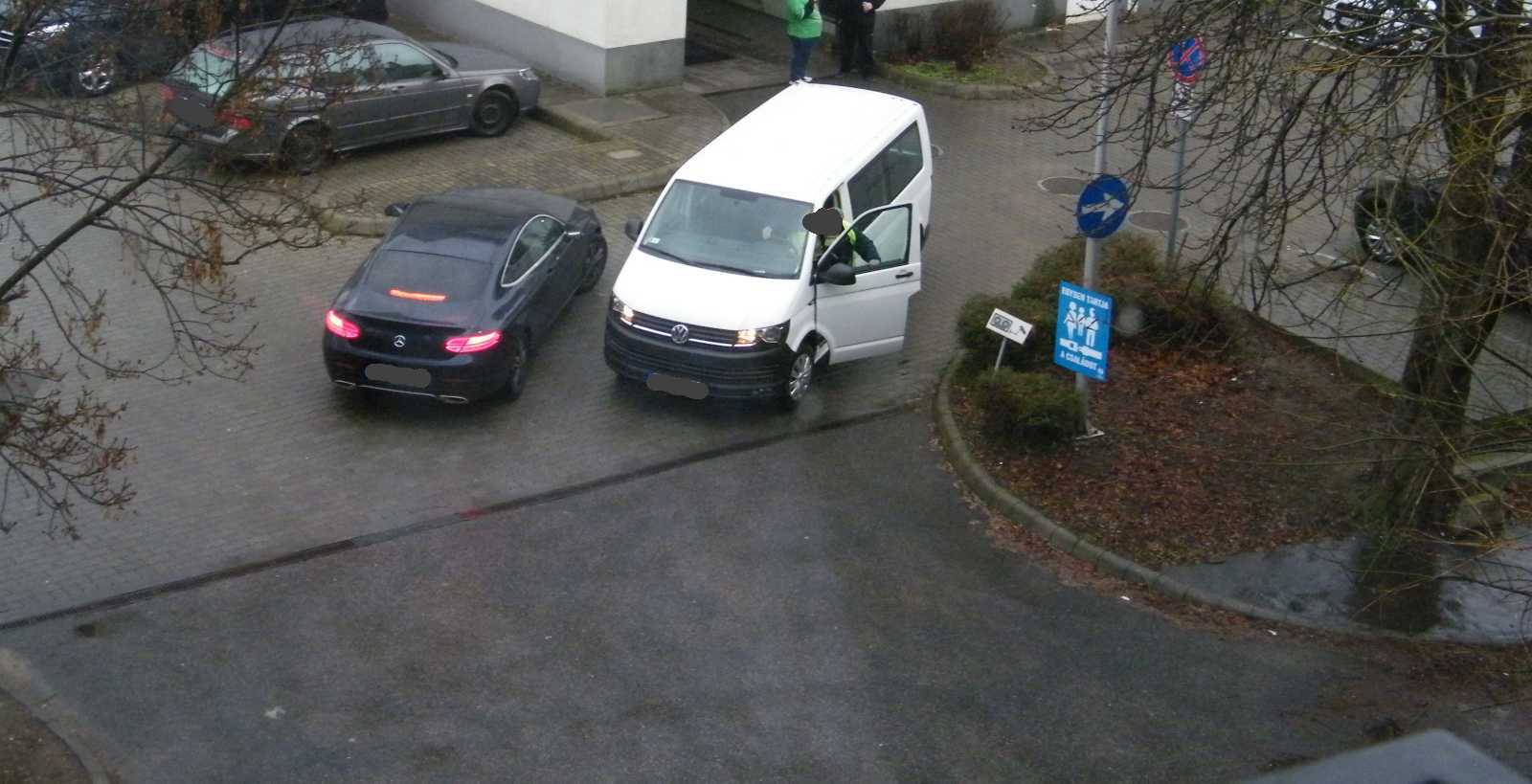 kijáratába parkolt (elkapta egy teherautó sarka), egy másik lakónak pedig a