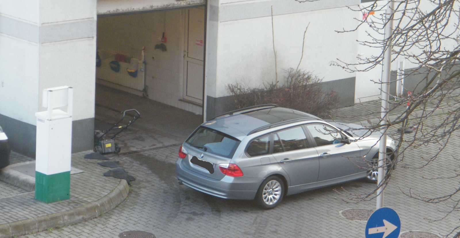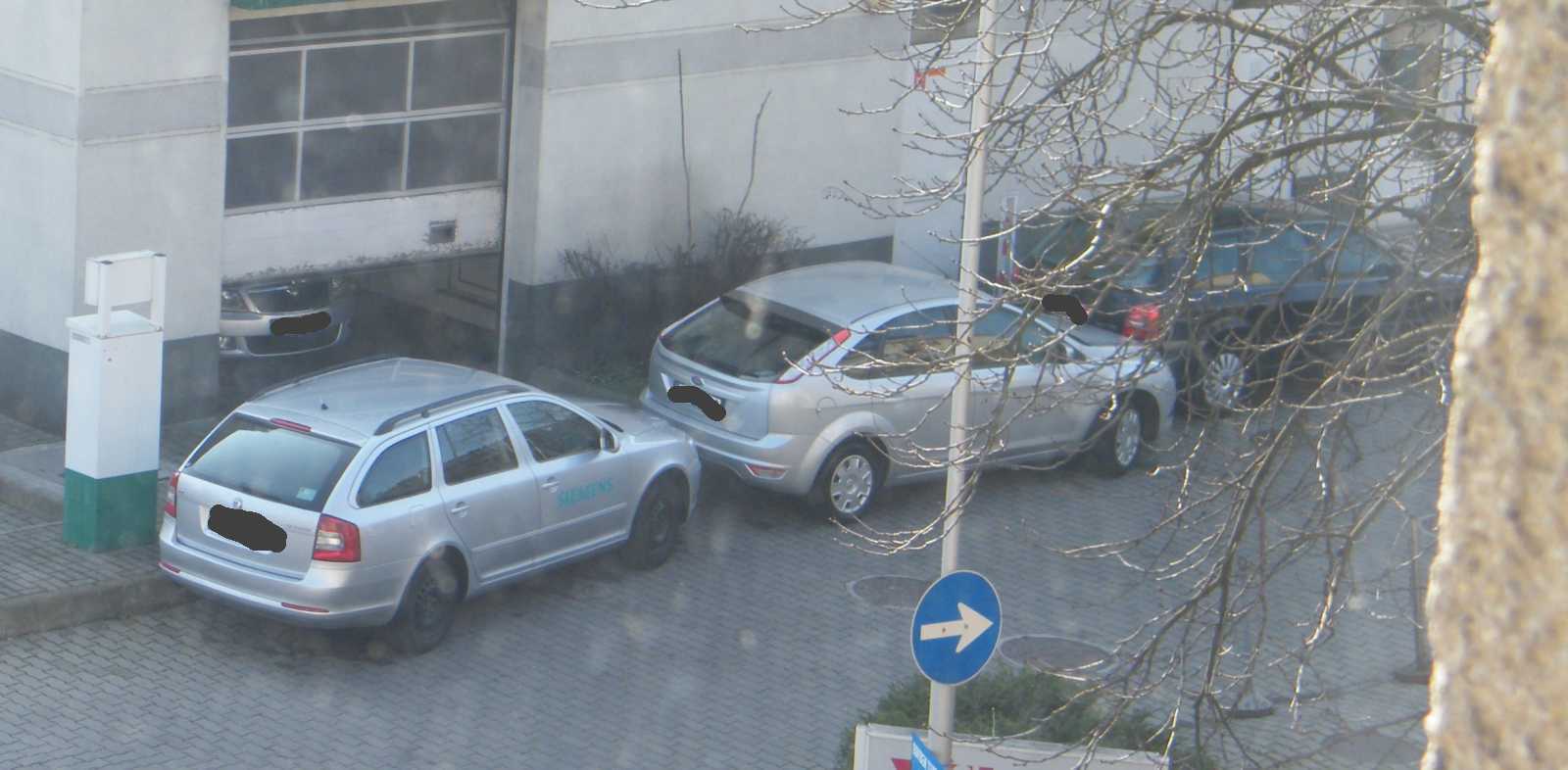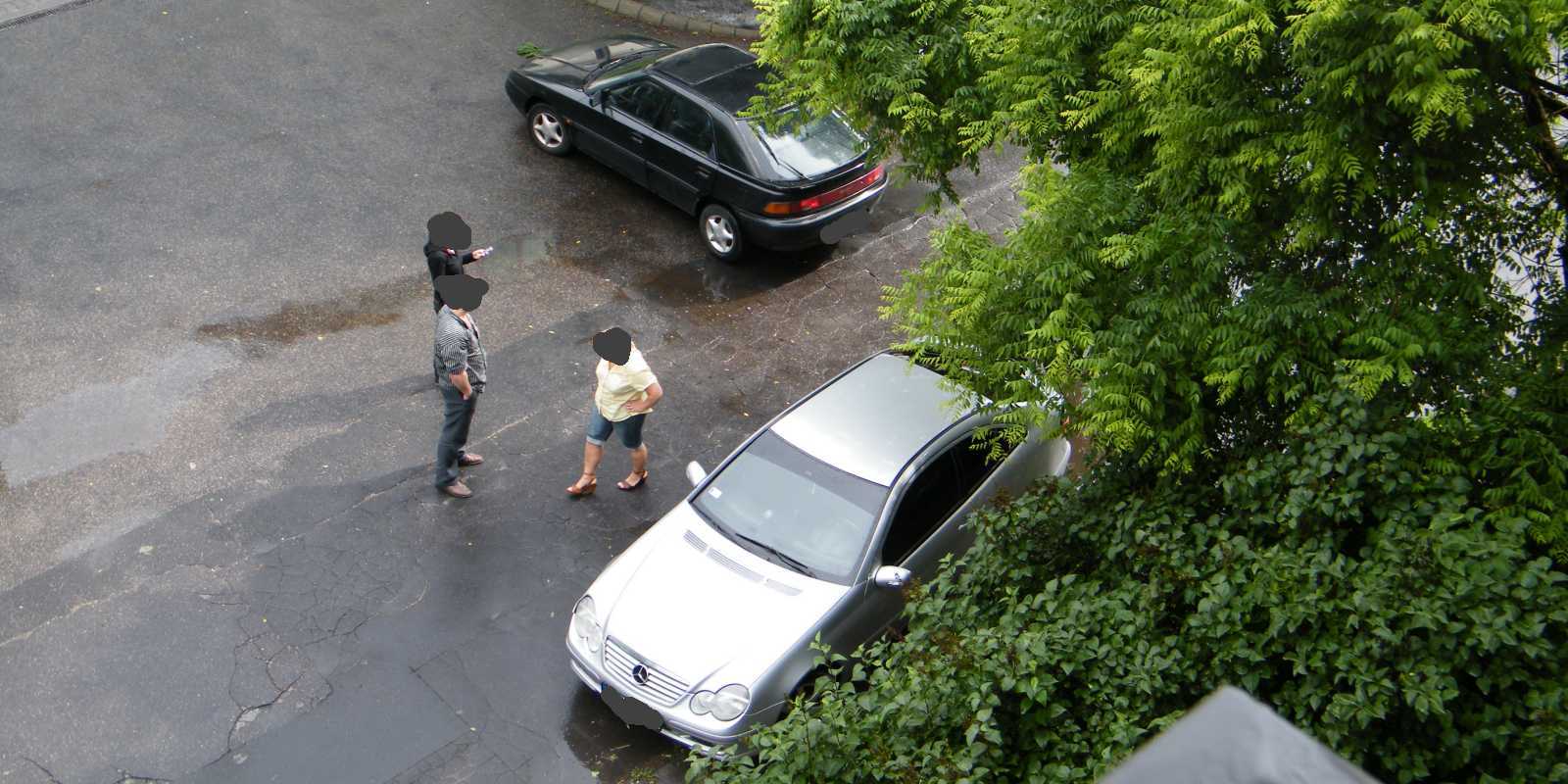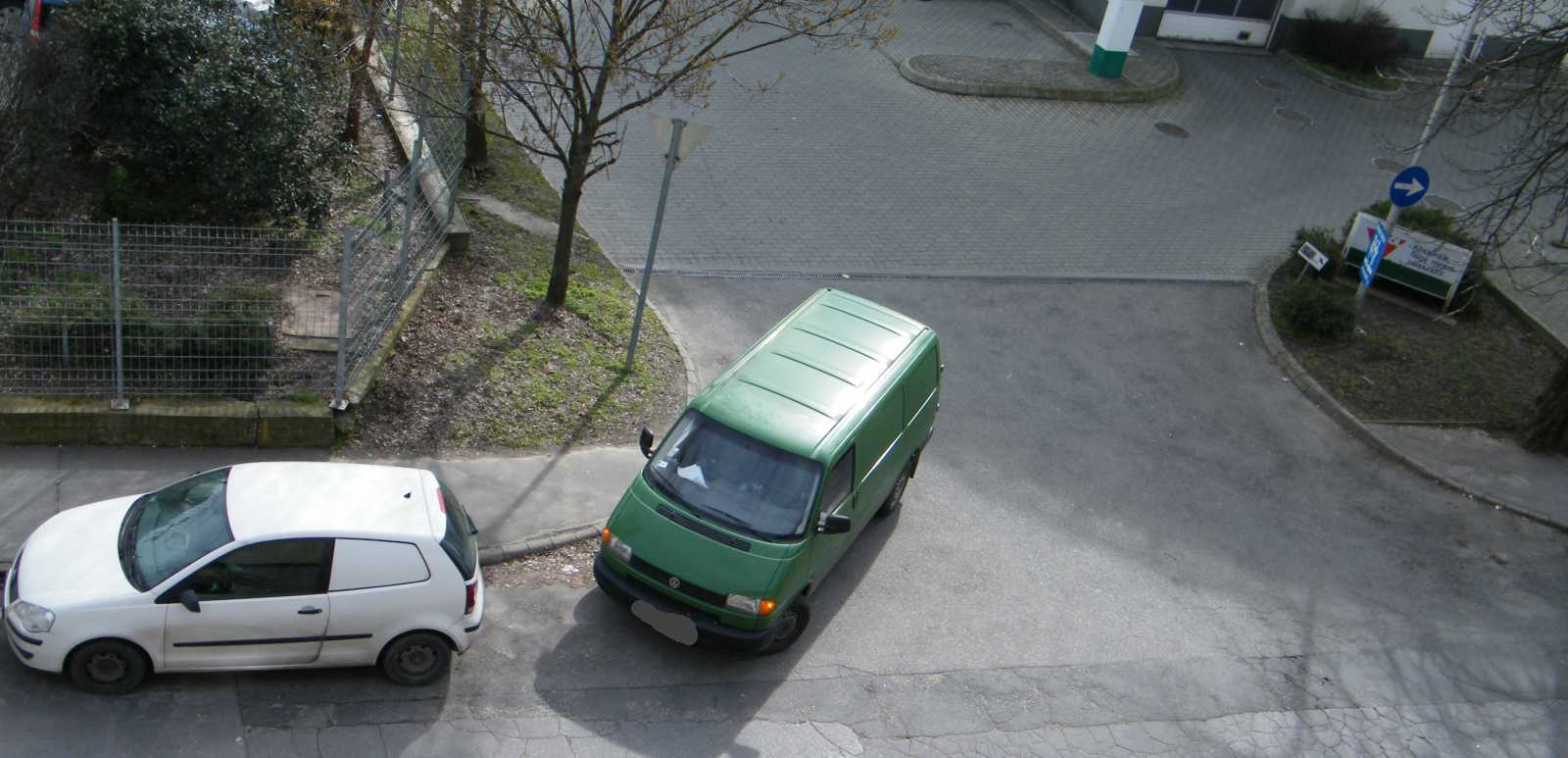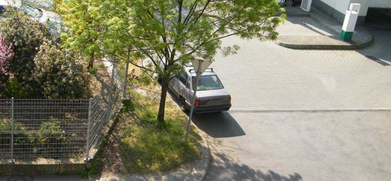 Az egyik autó a kapubejárót állja el, míg a másik az egyiket. Ezt a helyzetet azóta egyébként megszüntettük, mert egyrészt az udvar (a kocsi beállóval együtt) tűzoltósági felvonulási útvonal (vannak lakások, melyek csak a kertből olthatók), másrészt a képből kilógó kocsi pont a vízóra aknáján áll. Márpedig ha valami baj van (csőtörés), nálunk csak az aknában lehet elzárni a vizet. |