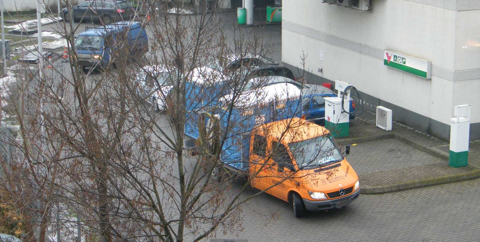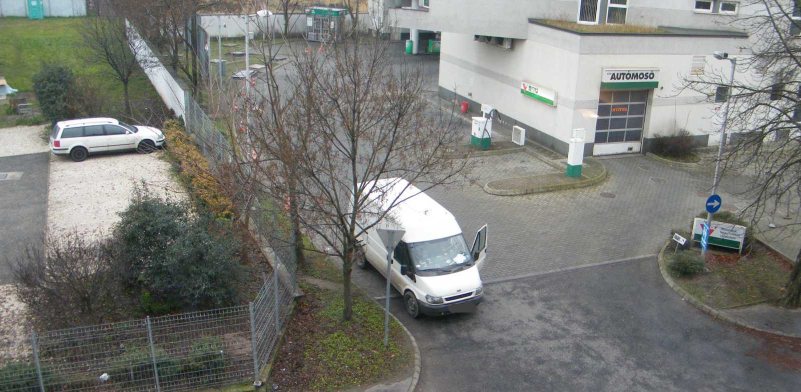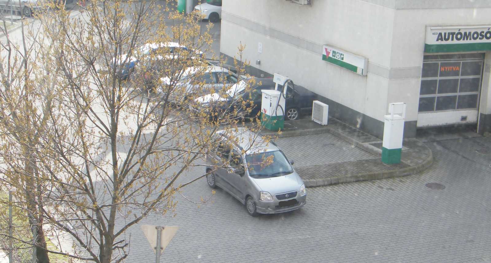 furgont tankolás után egyszerűen csak néhány méterrel előrébb gurulva.