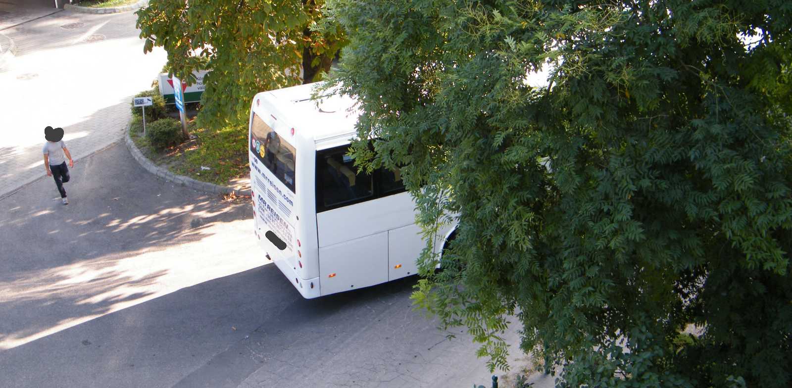 Mármint míg az előző képen még nyitva van az autó ablaka, és benne van a sofőr, addig ezen a másikon az ablak már zárva, és persze nincs a kocsiban senki, ami persze már nem megállás, hanem parkolás. Hogy ez nem egy percig tartott, azt az árnyékok állásából lehet visszafejteni. |