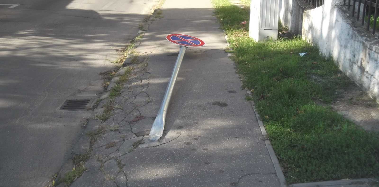 Ez a kép egy kicsit kilóg a sorból. Amúgy azt mutatja, hogy mikor a Hungária körútról végre letért, az utcánkon örömében végigszáguldó autó elér a sarokig, ahol is összetalálkozik egy a Francia úton száguldó társával, annak nem egyszer ez a szerencsétlen tábla issza meg a levét. |