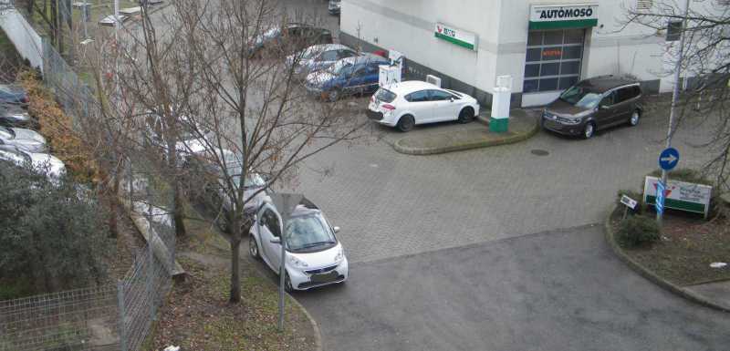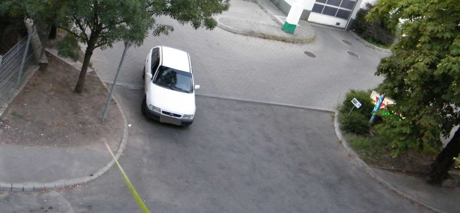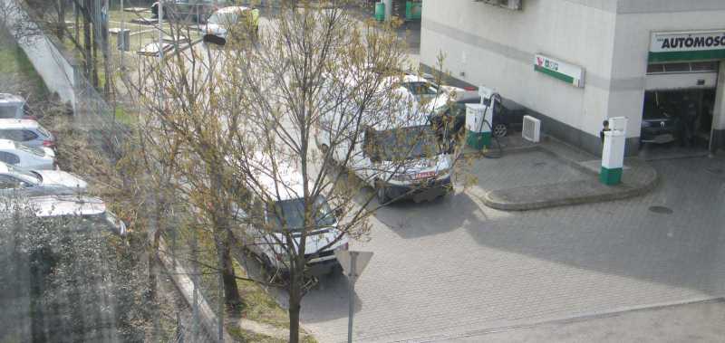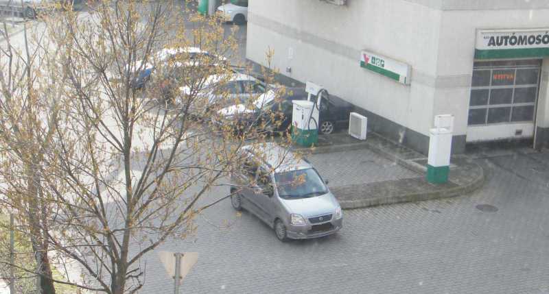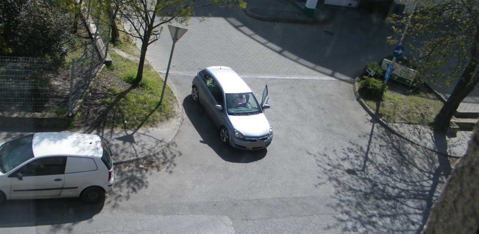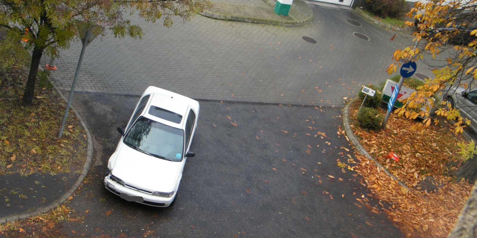 A benzinkút kijáratába sokkal jobban belógó kocsiban viszont nem ül senki. Itt azért csak felmerül már az emberben, hogy aki szerint ez így szabályos, konkrétan tegnap este óta itt áll az autója, az mégis hogyan kapott jogosítványt, illetve hogy nem vették még tőle el? Mondjuk lehet hivatkozni arra, hogy tegnap este sötét volt (ez amúgy egy jól kivilágított utca), de egy ekkora kijáratot még korom sötétben sem lehet csak úgy egyszerűen nem észrevenni. |