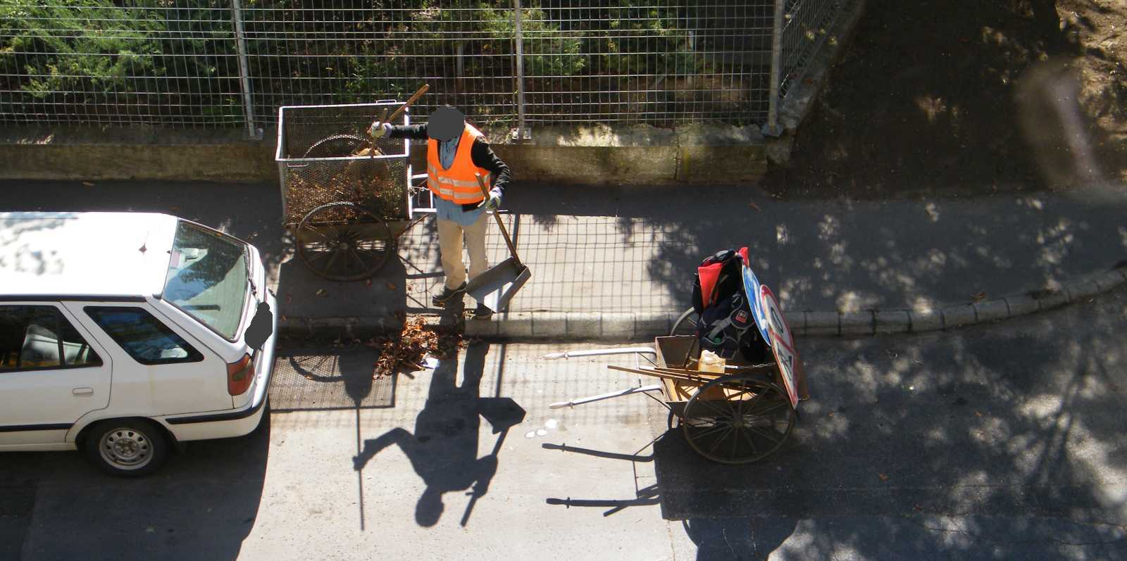 Ez egy 2015-ben készült kép, mikor még jártak az utcánkban a köztisztaságiak. Mármint mostanában már csak a kefés autó jön, az meg az út ezen oldalához nem fér hozzá. Ez annyira így van, hogy mikor meguntam nézni, bár szemközt van velünk, vagyis még véletlenül sem az én felségterületem, pont mint a csíkos mellényű mester, legalább azt a részt felkapáltam, amire pont rálátok. |