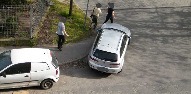 parkolni a kijáratba, ráadásul valamiért méterre a járdától.
