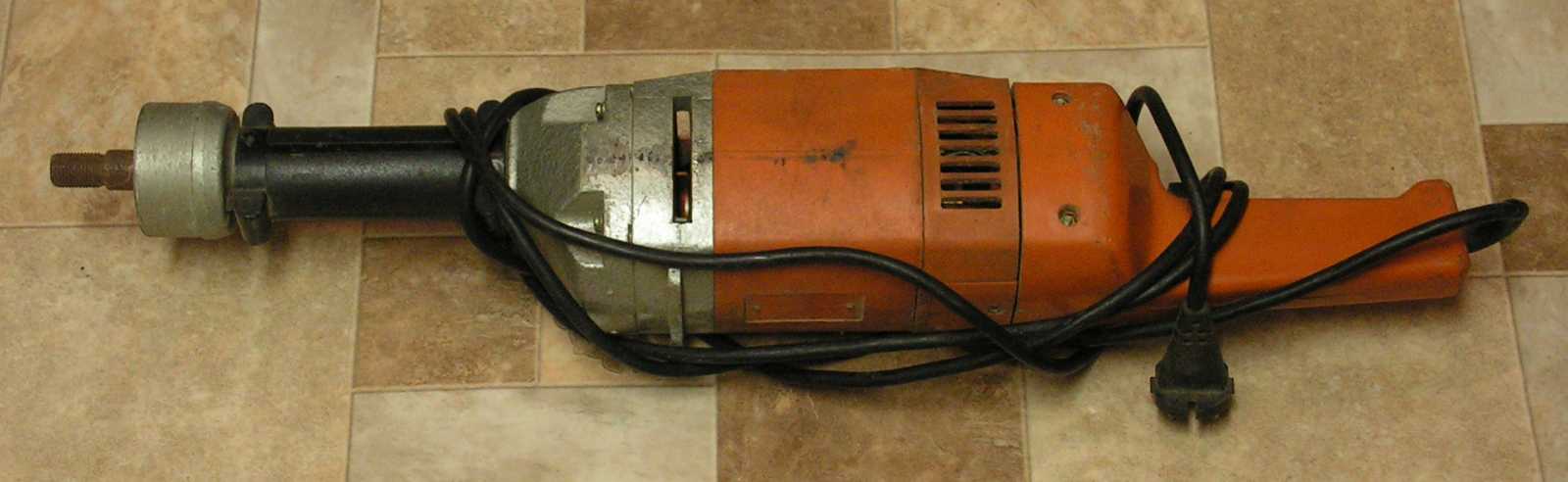 Ennek a gépnek azért áll ilyen furán a markolata, mert ez ugye a nevéhez híven egyenesen csiszol, vagyis szemből nézve van rajta a csiszolótárcsa. Mármint azért áll így, mert ahhoz a feladathoz, amire ez a gép való, ezt az állású nyelet lehet jól megmarkolni. |