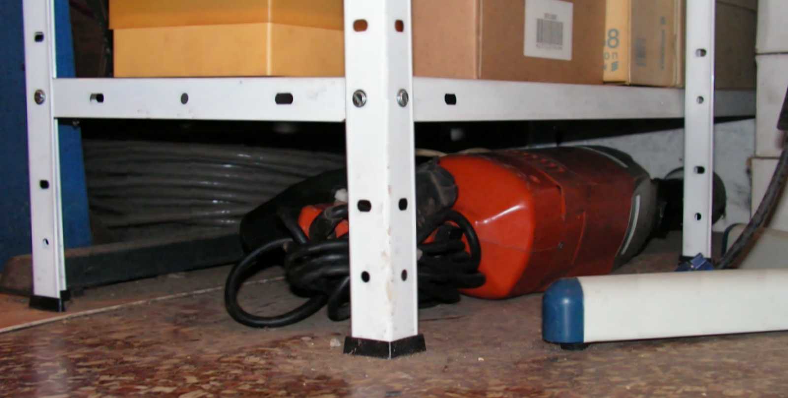 Ha élek addig, akkor biztosan nem ez lesz a végleges helye, de mivel most sehol másutt nem akadt számára elfogadható hely, így bedugtam a polc alá, közvetlenül az EVIG fúrógép mellé. |
