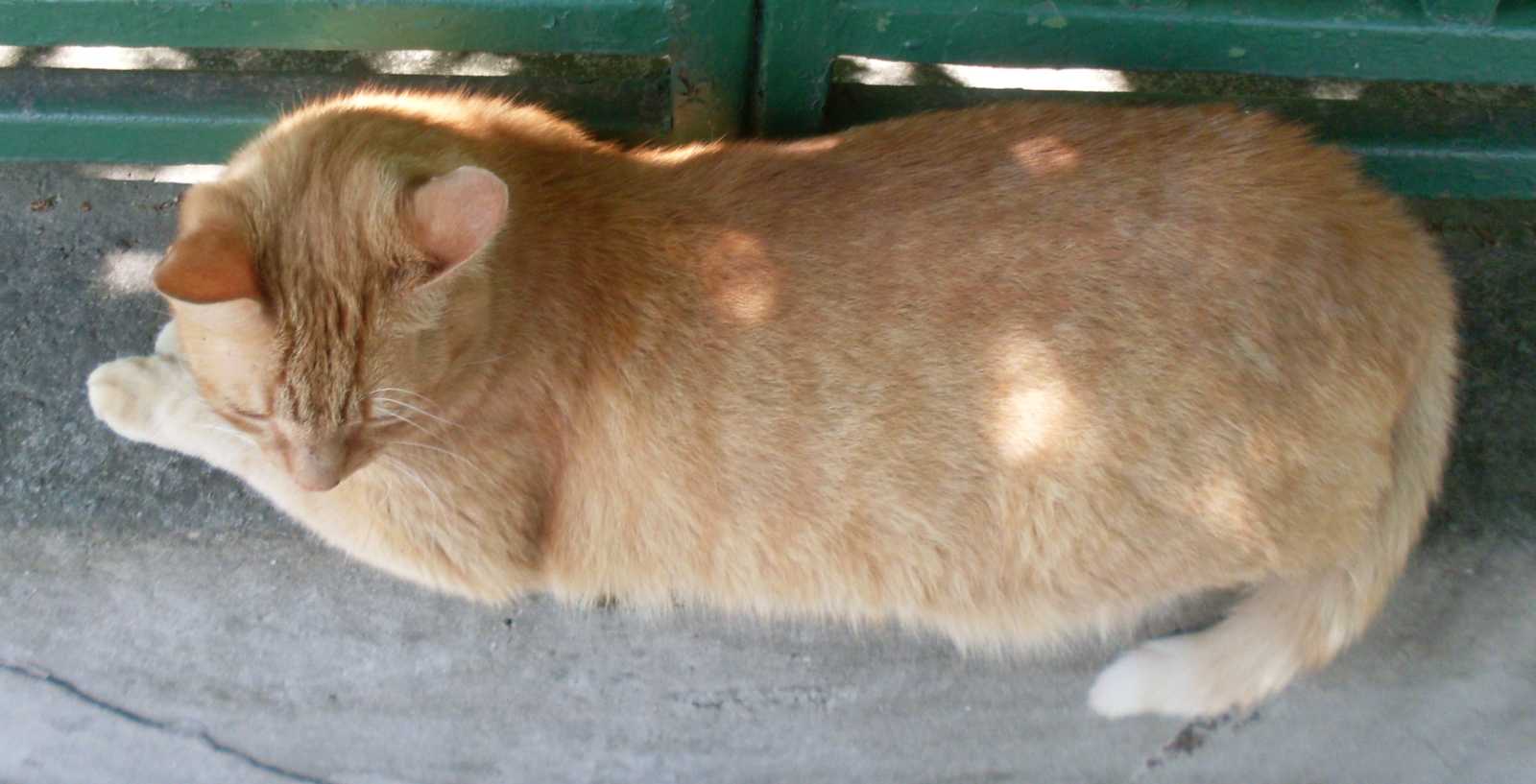 Ez egy annyira békés macska, hogy nemcsak hagyta magát lefényképezni, de még csak meg sem rezzent, mikor megálltam mellette a bicajjal. Az pedig pláne nem érdekelte (én mondjuk a cica simogatása közben frászt kaptam tőle), amint a brazil gépsor nekiállt egy furgonba dobálni a környékről összegyűjtött vasakat. |