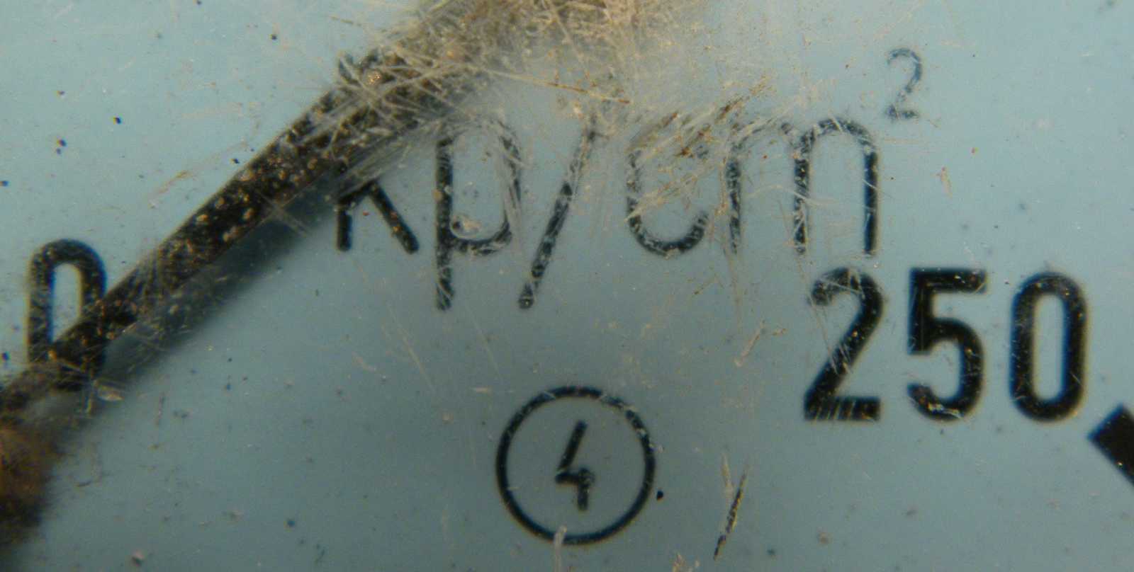 A műszer skálája a nyomást kilopond / négyzetcentiméterben mutatja.