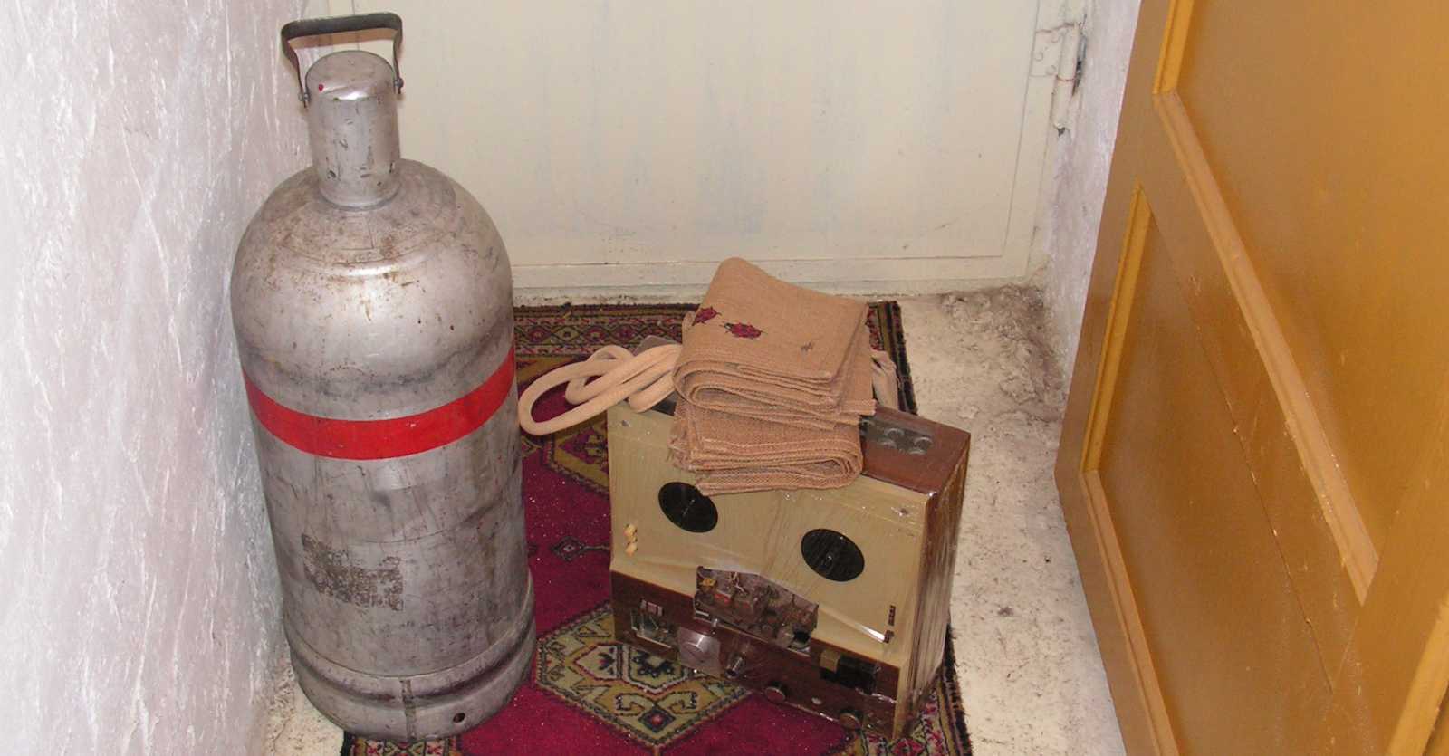 ekkor még a magnóval együtt a hátam mögött volt), a gázpalack már rajta van a
