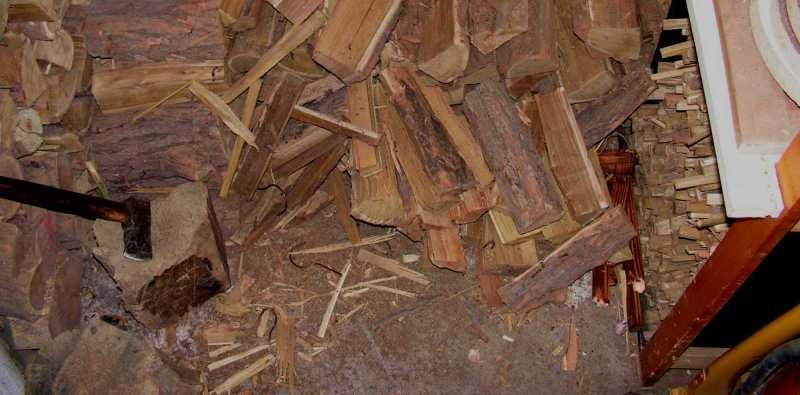 Sikertelenségem tovább növelendő, a két katicás fahordó szatyrot sem a lakásban, sem a pincében nem találtam meg, mire fel mérgemben hasogattam egy egész szekrényre való tűzifát. Mivel a szatyrok semelyik fellelési helyükön sem voltak, mérgemben nekiálltam más egyéb irányú rendezkedéseknek. Például leszereltem a fagyok elől a kerti csapot, majd a sárga dobozt, és még a kiürített kannákat is behoztam. |