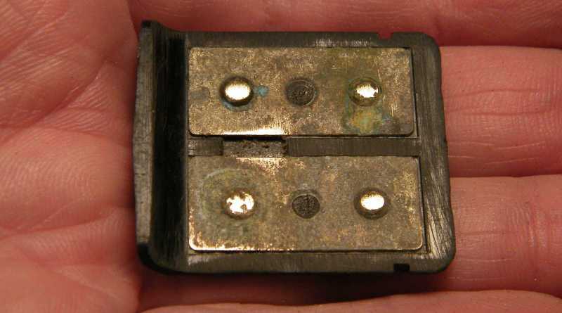 Az elemek behelyezési pozícióit mutató címkék közül csak egy maradt meg, de mivel a belső érintkezők nem egyformák, így a matricák hiányának ellenére is ki tudtam sakkozni, hogy hogyan valók a tartóba az elemek. |