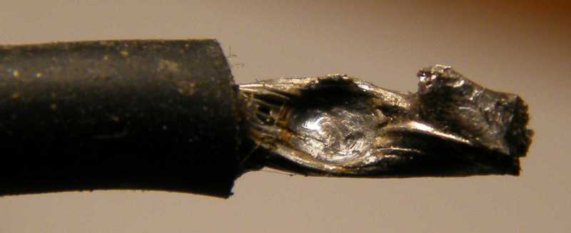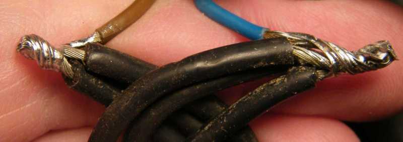 A foglalat csavaros szorítójába bekötött vezeték vége ónozva volt. Erre a helyre mondjuk nem való az ón, mert az csak úgy magától, a hő hatására pedig pláne megfolyik! Mondjuk ha össze voltak tekerve szorosra az elemi szálak, és csak vékonyan voltak befuttatva ónnal, akkor még elmegy, de amúgy ide egyértelműen vagy érvéghüvely kell, vagy olyan szorító, ami rugós, de ha nem, akkor minimum kell egy fémlapocska a csavar vége és a drót közé, különben a csavar vége a képen látható módon beleváj a drótba, de szerencsétlen esetben akár még át is vághatja. |