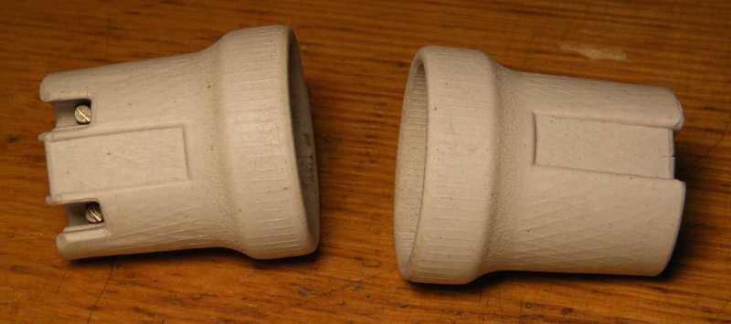 Mivel a konyhai lámpa bekötést eltűntető harangját már megoldottam másból, meg persze ez a fekete már eleve nem passzolt volna a fehér konyhába, így ez az alkatrész is későn jött. Balra amúgy a lámpa plafonról történő lehúzhatóságáért felelős alkatrészt látjuk. |