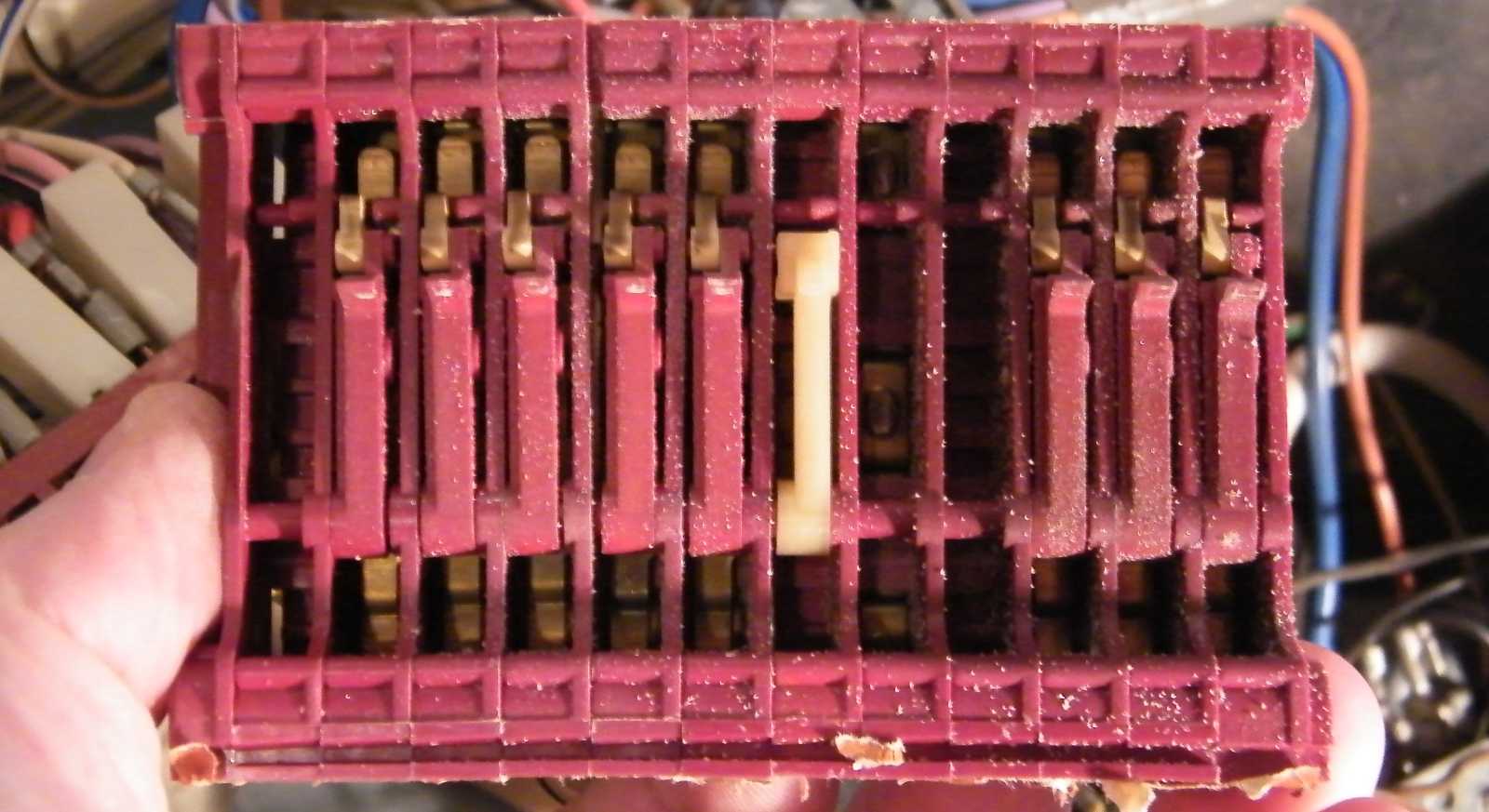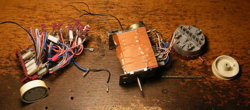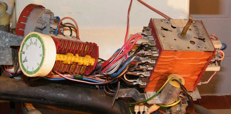 S már kaptam is magam elé az amúgy hatalmas programkapcsolót, majd a lehúzogattam a vezérlésről leválasztott elemi kapcsolók vezetékeit, ami amúgy nem volt valami egyszerű. Majd mindjárt megmutatom, hogy miért nem, csak előbb még a kapcsolókat vesézem ki. |
