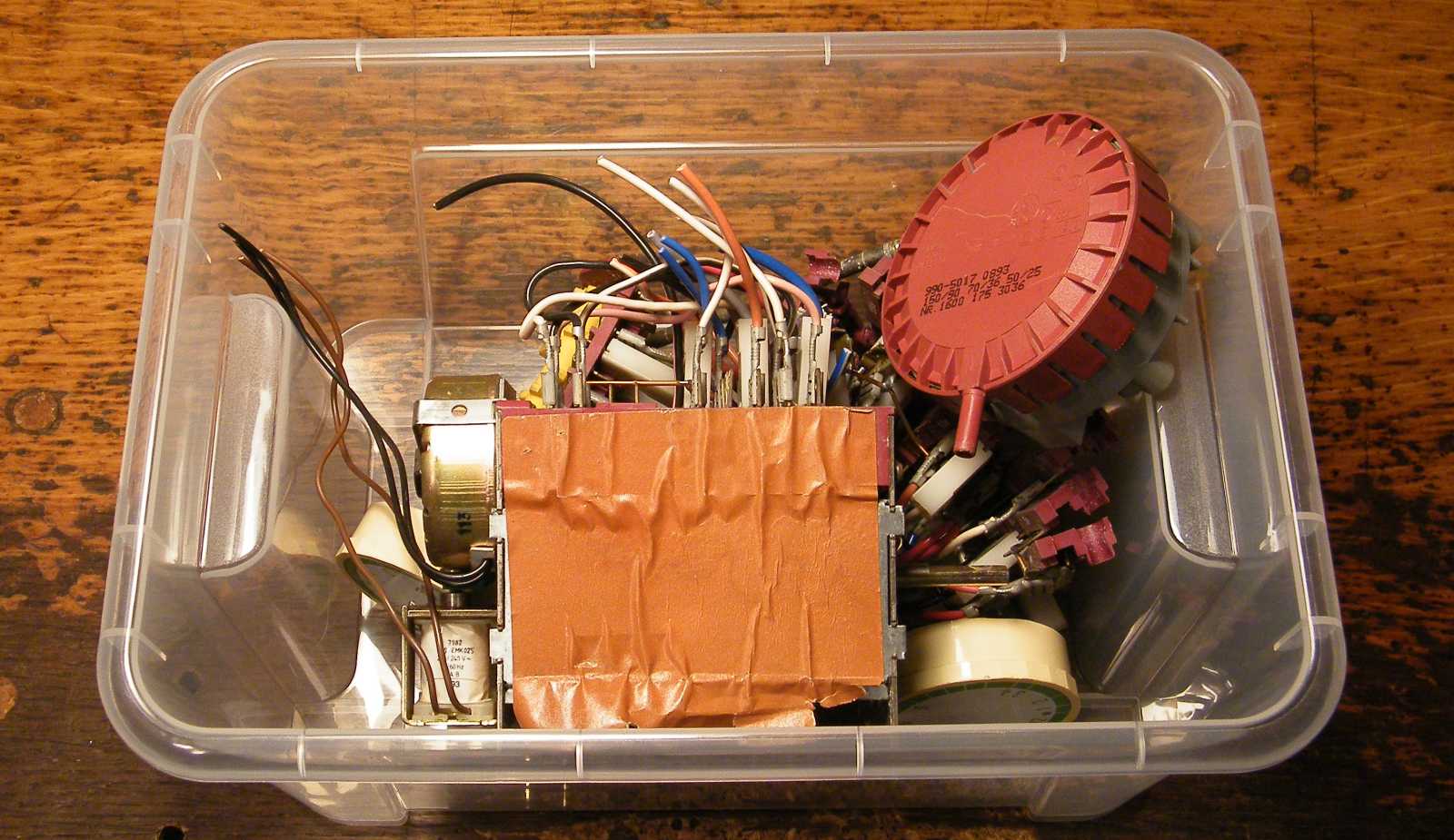 Mivel ezek a pogácsák csak akkor kapcsoltak, mikor a felhasználó tekerte a kapcsolót, vagyis csak a mosógép be és kikapcsolásakor, így ezek még teljesen épek, ami mondjuk ezen a képen pont nem látszik, mire fel előszedtem az asztali szemetesből a már napok óta benne heverő maradványt. |