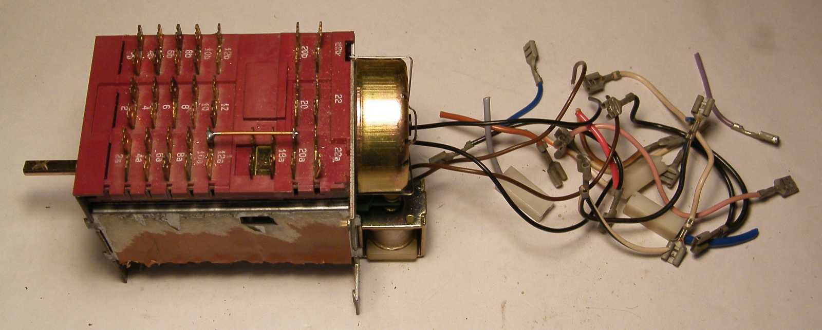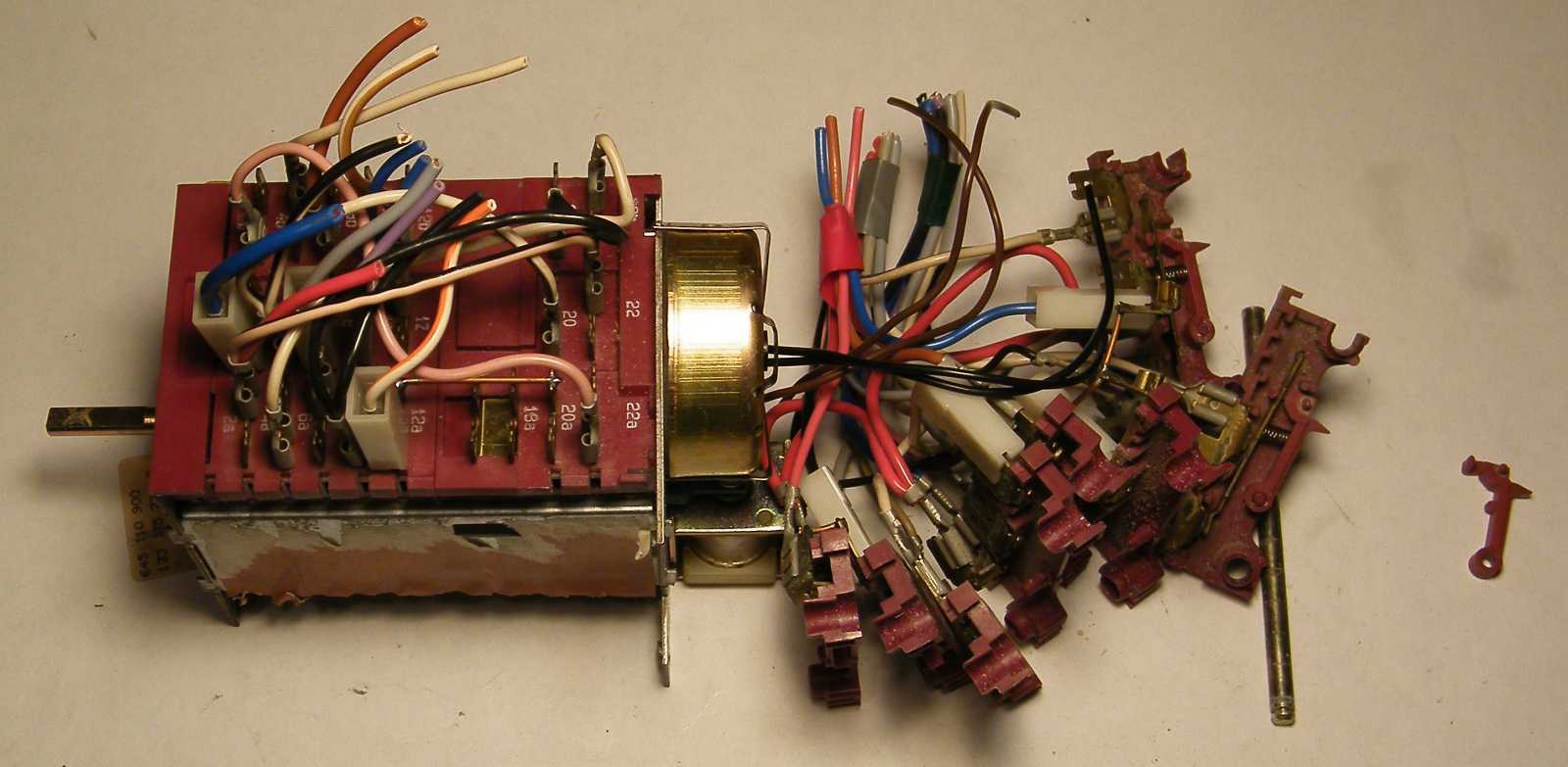 Eddig jó vagyok, s még a lelkem sem roppant bele a kapcsoló elpusztításába. Ellenben az, hogy az érintkezési hibák javítására lett volna némi esélyem, az azért egy kicsit megviselt. Ehhez persze az kellett volna, hogy mielőtt lerombolom, a programkapcsoló teljes felépítésével tisztában legyek, ami ugye csak így utólag volt lehetséges. |