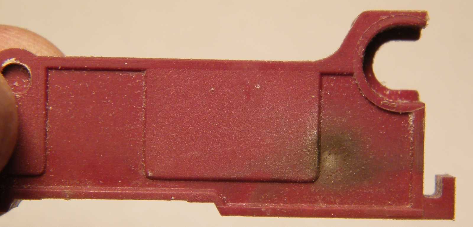 Amit a kép közepén alig látni, az a bordó műanyag színeváltozása.